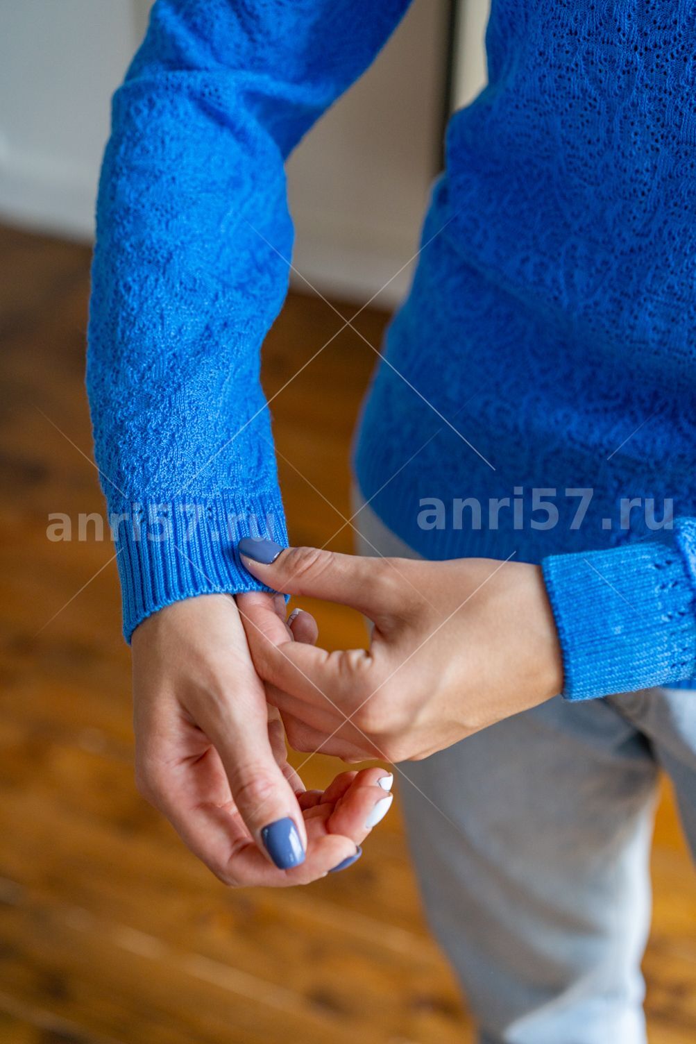 Джемпер женский ж0306. Джемпер из тонкого вязаного полотна с фактурным узором. Горловина округлой формы с обтачкой в виде "кокетки", декорированной тесьмой и украшением из металла. Рукав втачной, прямой. Низ изделия и низ рукава на "резинке". Состав: 30% Шерсть, 70% ПАН.