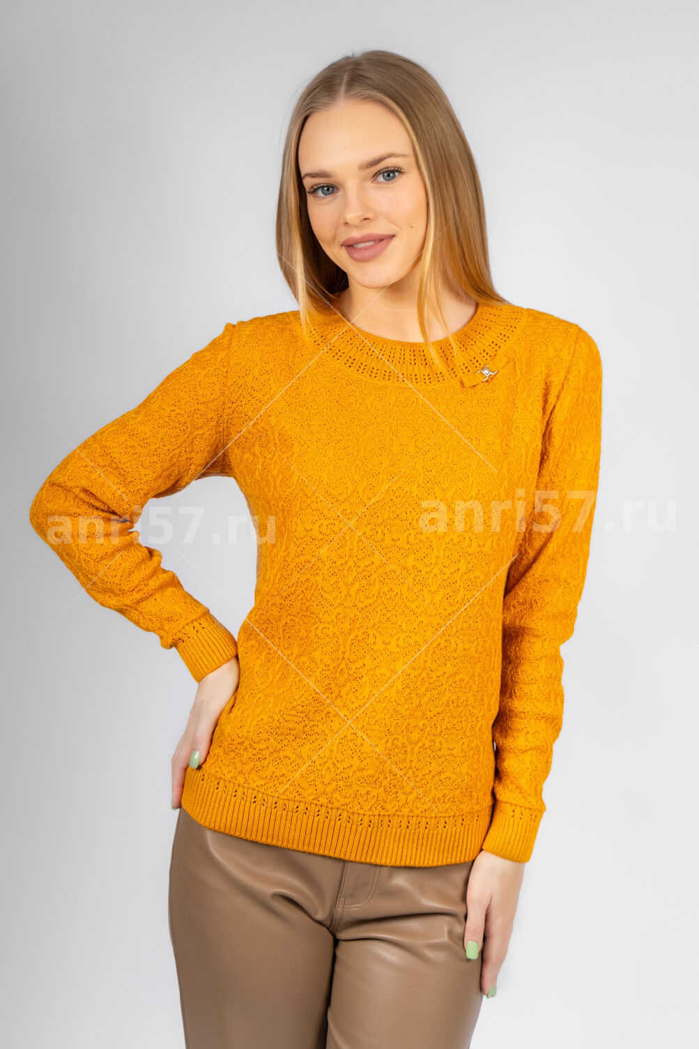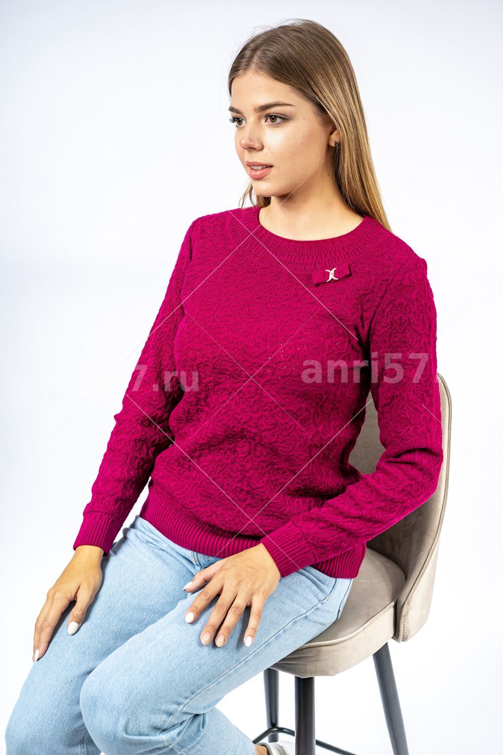 Джемпер женский ж0306 ВЕЛИКАН. Джемпер из тонкого вязаного полотна с фактурным узором. Горловина округлой формы с обтачкой в виде "кокетки", декорированной тесьмой и украшением из металла. Рукав втачной, прямой. Низ изделия и низ рукава на "резинке". Состав: 30% Шерсть, 70% ПАН.