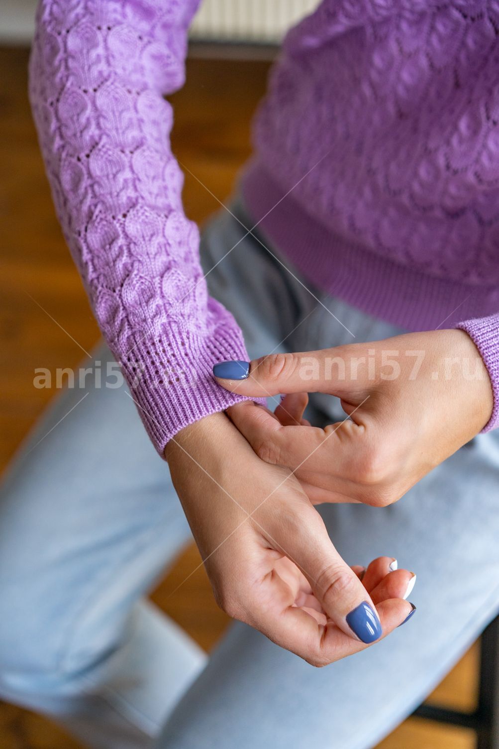 Джемпер женский ж0368 ВЕЛИКАН. Джемпер из тонкого вязаного полотна с фактурным узором. Горловина округлой формы с обтачкой в виде "кокетки", декорированной тесьмой и украшением из металла. Рукав втачной, прямой. Низ изделия и низ рукава на "резинке". Состав: 30% Шерсть, 70% ПАН.