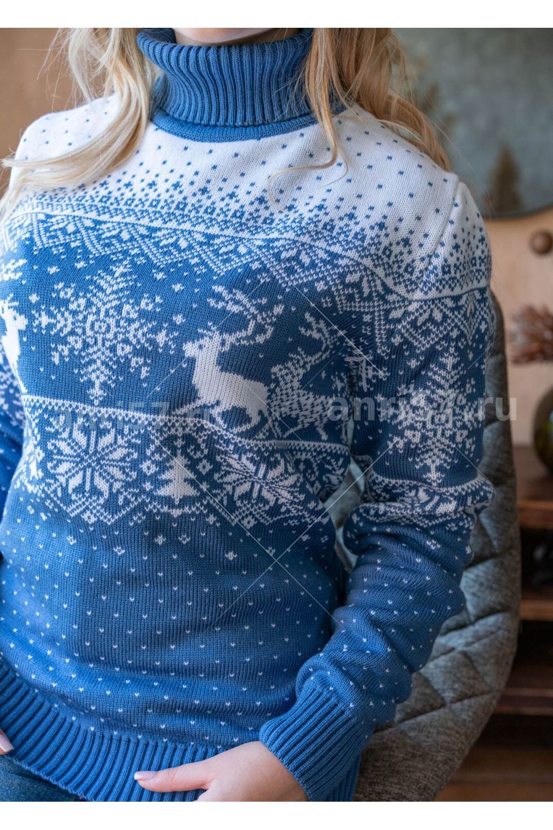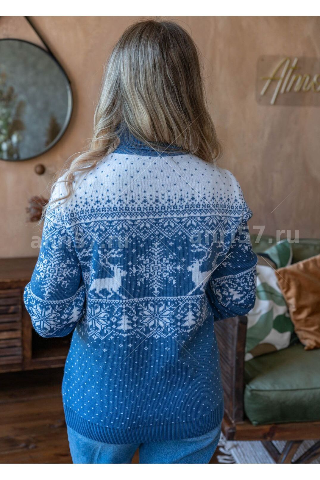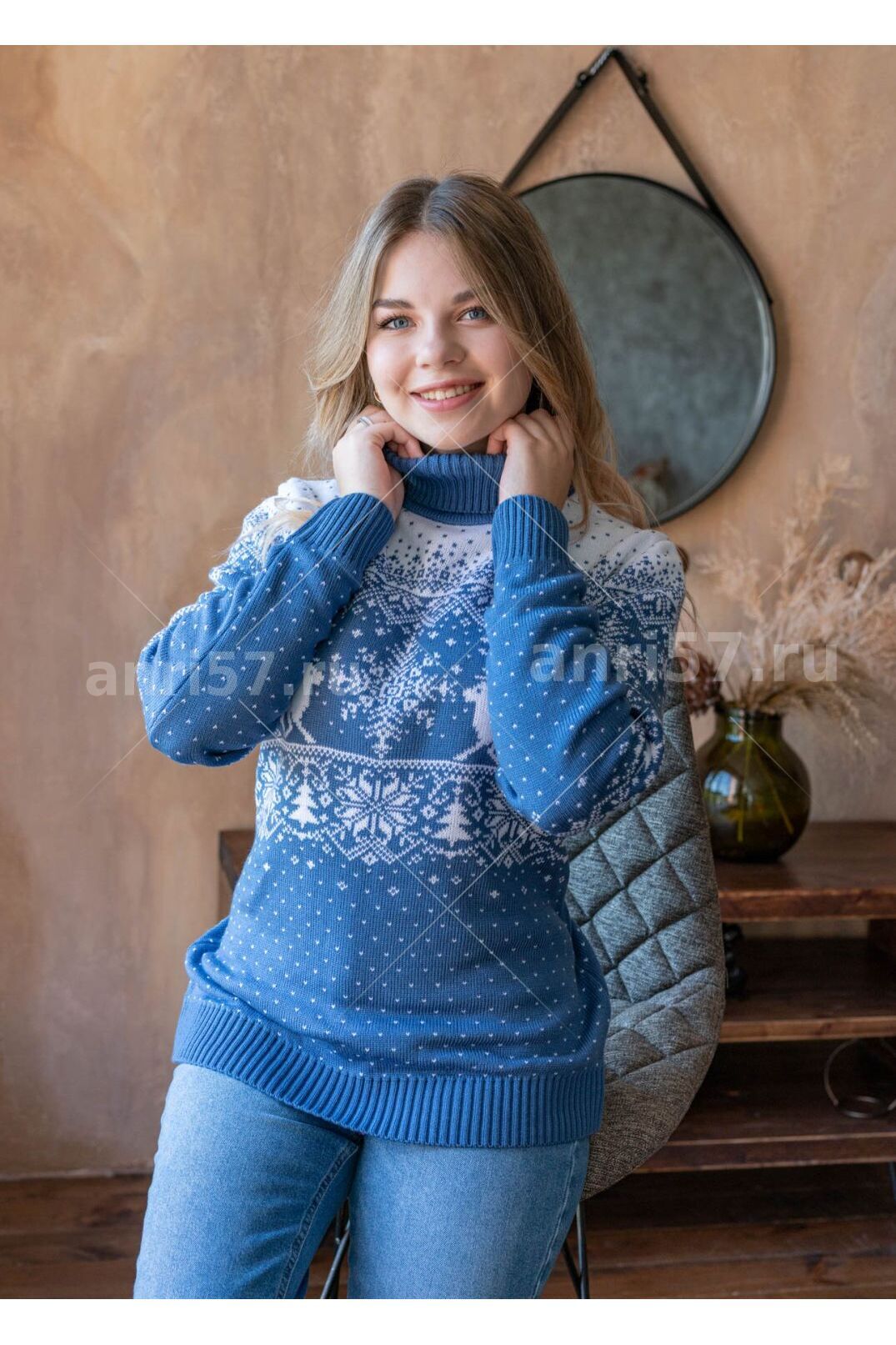 Джемпер женский ж0468хомут. Джемпер полуприлегающего силуэта из жаккардового полотна с принтом "Олени". Горловина с воротником "хомут". Низ изделия и рукава на "резинке". Состав: 30% Шерсть, 70% ПАН.