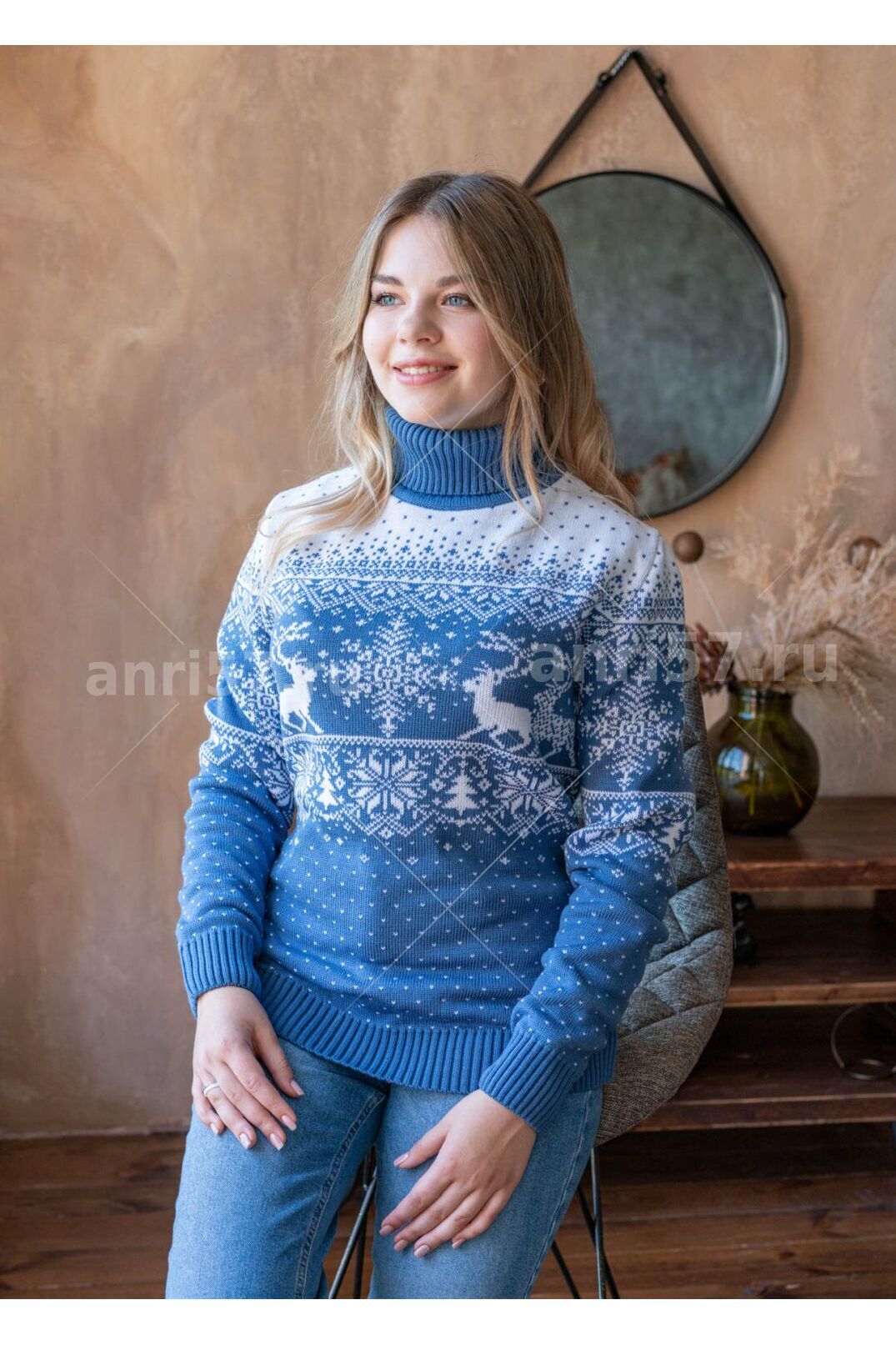 Джемпер женский ж0468хомут. Джемпер полуприлегающего силуэта из жаккардового полотна с принтом "Олени". Горловина с воротником "хомут". Низ изделия и рукава на "резинке". Состав: 30% Шерсть, 70% ПАН.