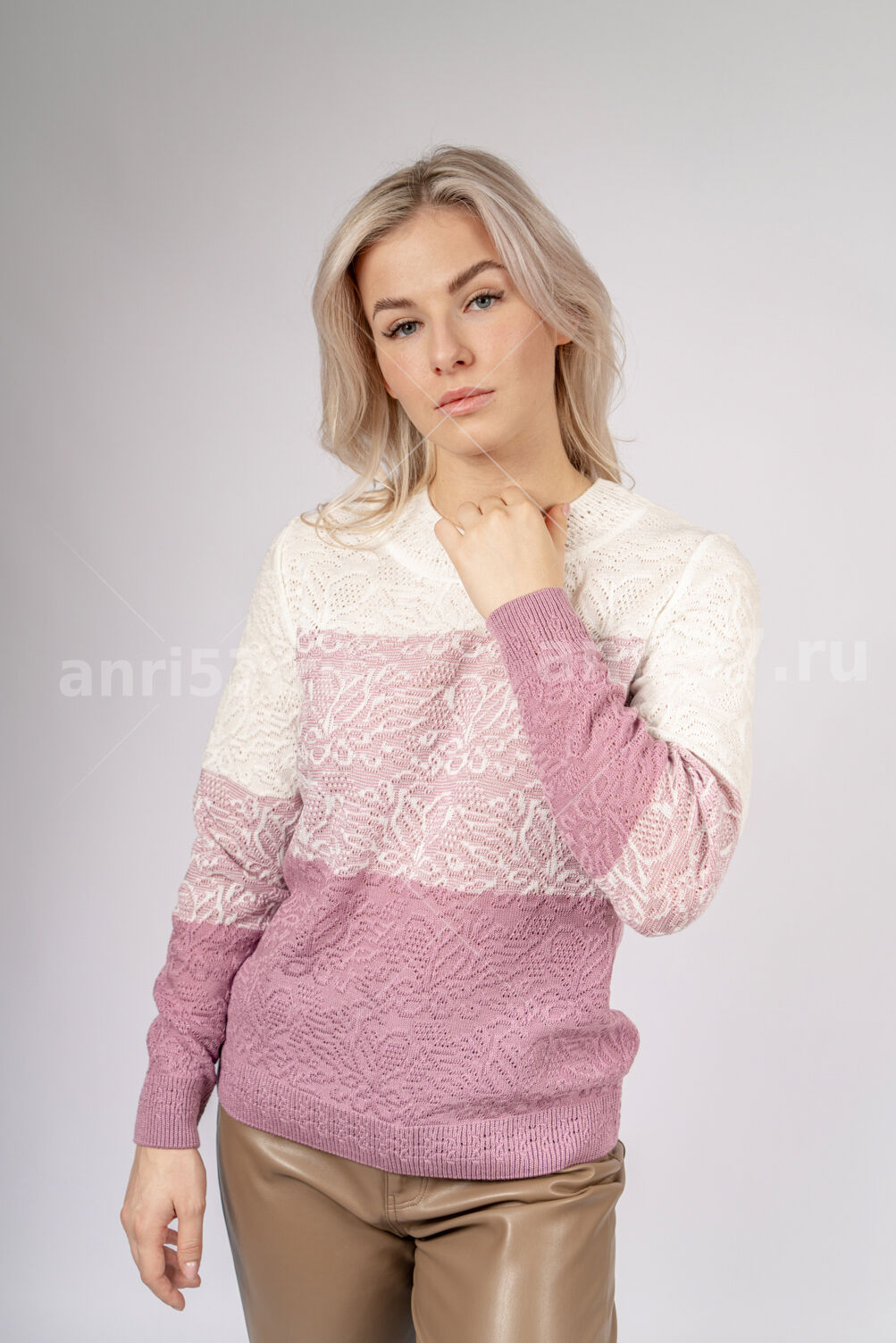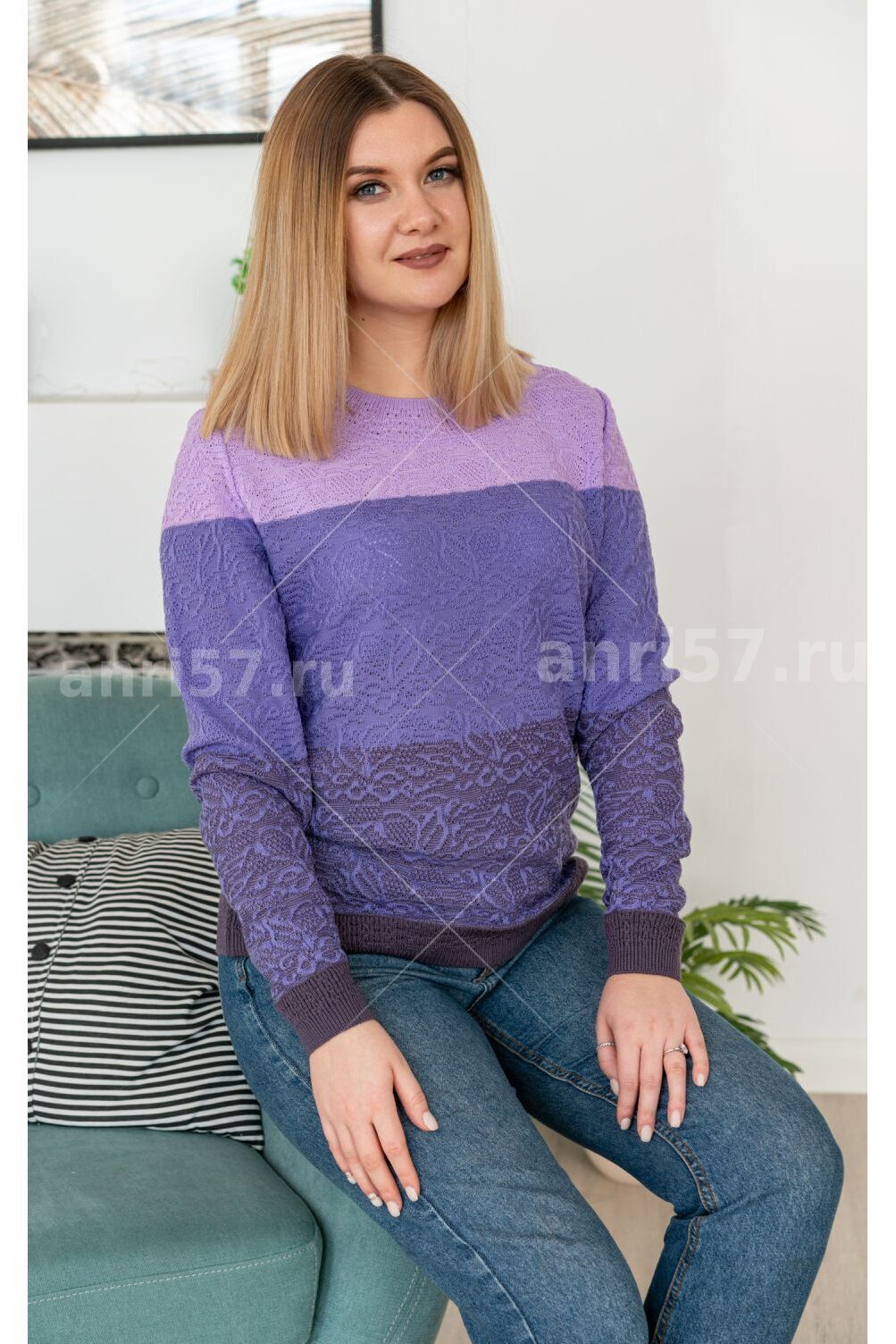 Джемпер женский ж0470. Джемпер полкприлегающего силуэта из фактурного вязаного полотна блочной расцветки. Рукав втачной на резинке "по низу". Горловина округлой формы с обтачкой. Состав: 30% Шерсть, 70% ПАН.