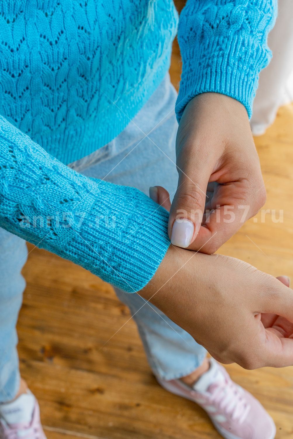Джемпер женский ж0501. Джемпер полуприлегающего силуэта из ажурного вязаного полотна. Рукав и низ изделия на "резинке". Горловина округлой формы с обтачкой. Рукав втачной. Состав: 30% Шерсть, 70% ПАН.