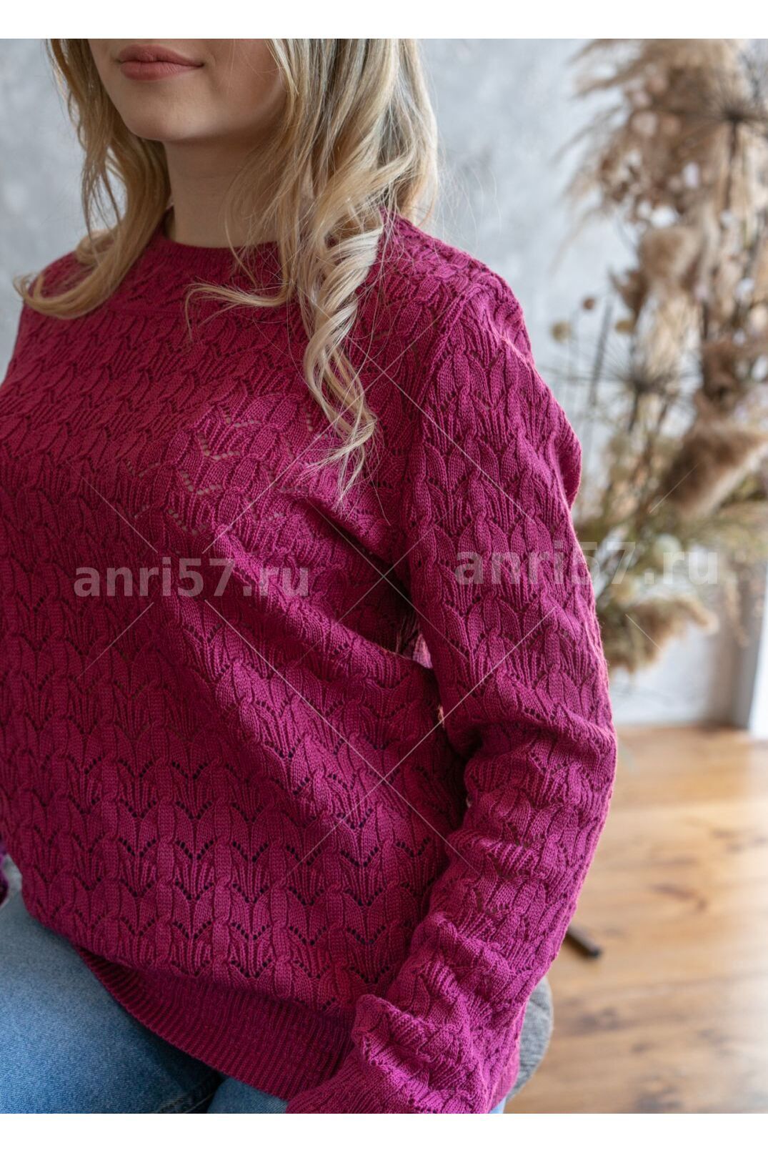 Джемпер женский ж0501. Джемпер полуприлегающего силуэта из ажурного вязаного полотна. Рукав и низ изделия на "резинке". Горловина округлой формы с обтачкой. Рукав втачной. Состав: 30% Шерсть, 70% ПАН.