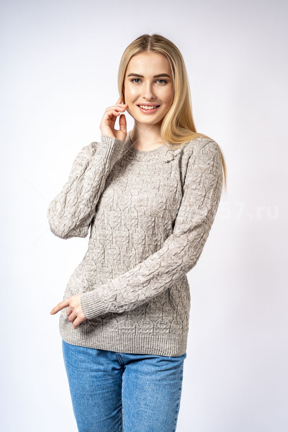 Джемпер женский ж0504 Великан. Джемпер полуприлегающего силуэта из ажурного вязаного полотна. Рукав втачной, на "резинке" по низу. Горловина округлой формы с обтачкой. Низ изделия на "резинке". Состав: 30% Шерсть, 70% ПАН.