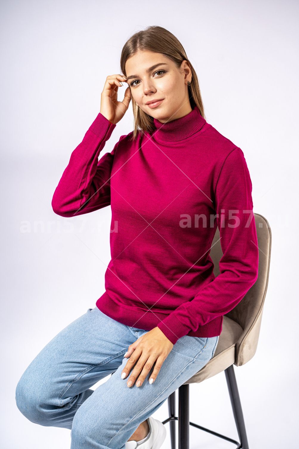 Джемпер женский ж0622х. Джемпер полуприлегающего силуэта из тонкого вязаного полотна. Рукав и низ изделия на "резинке". Рукав втачной. Воротник - "хомут". Состав: 30% Шерсть, 70% ПАН.