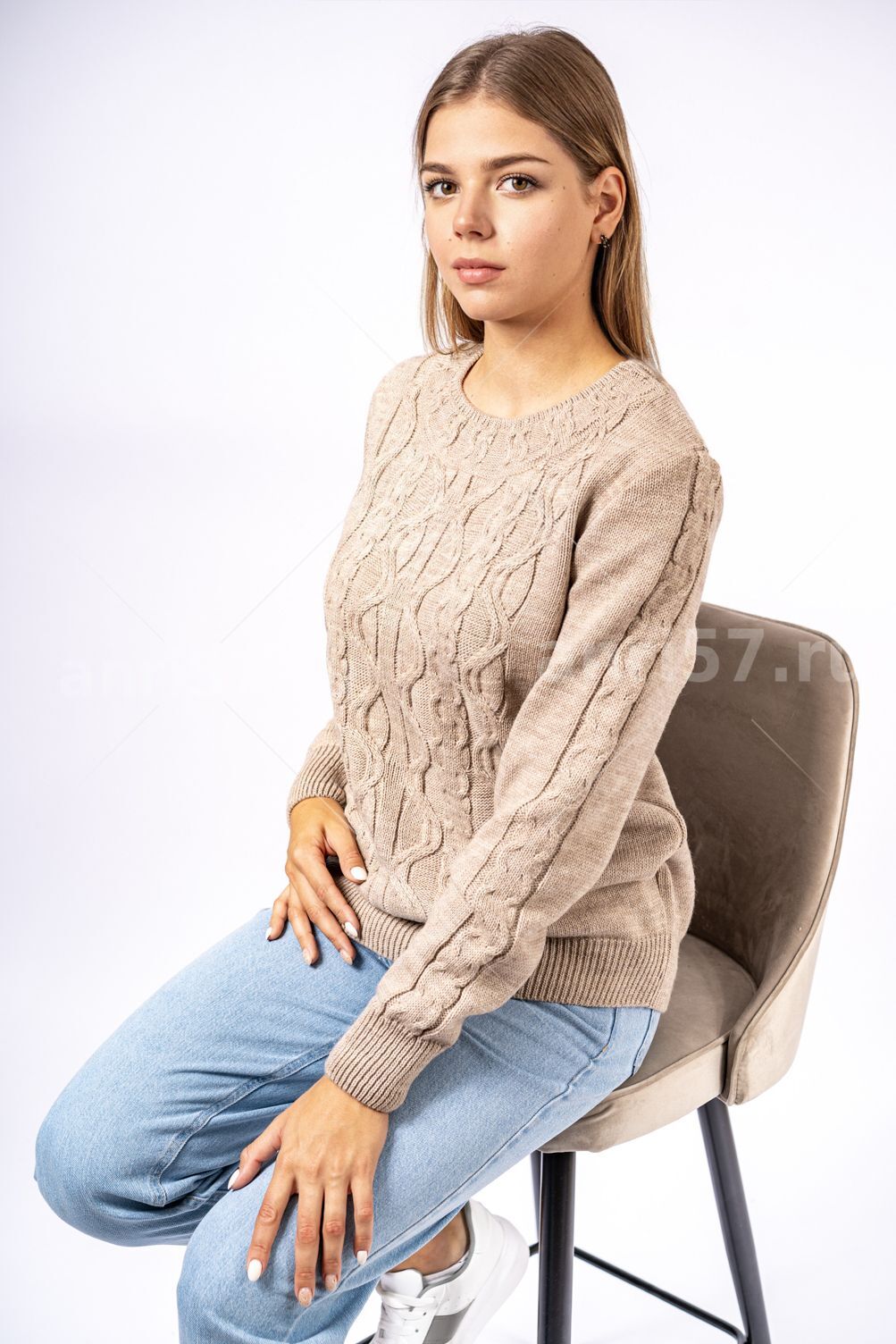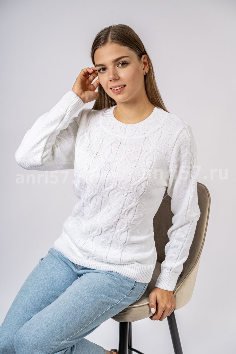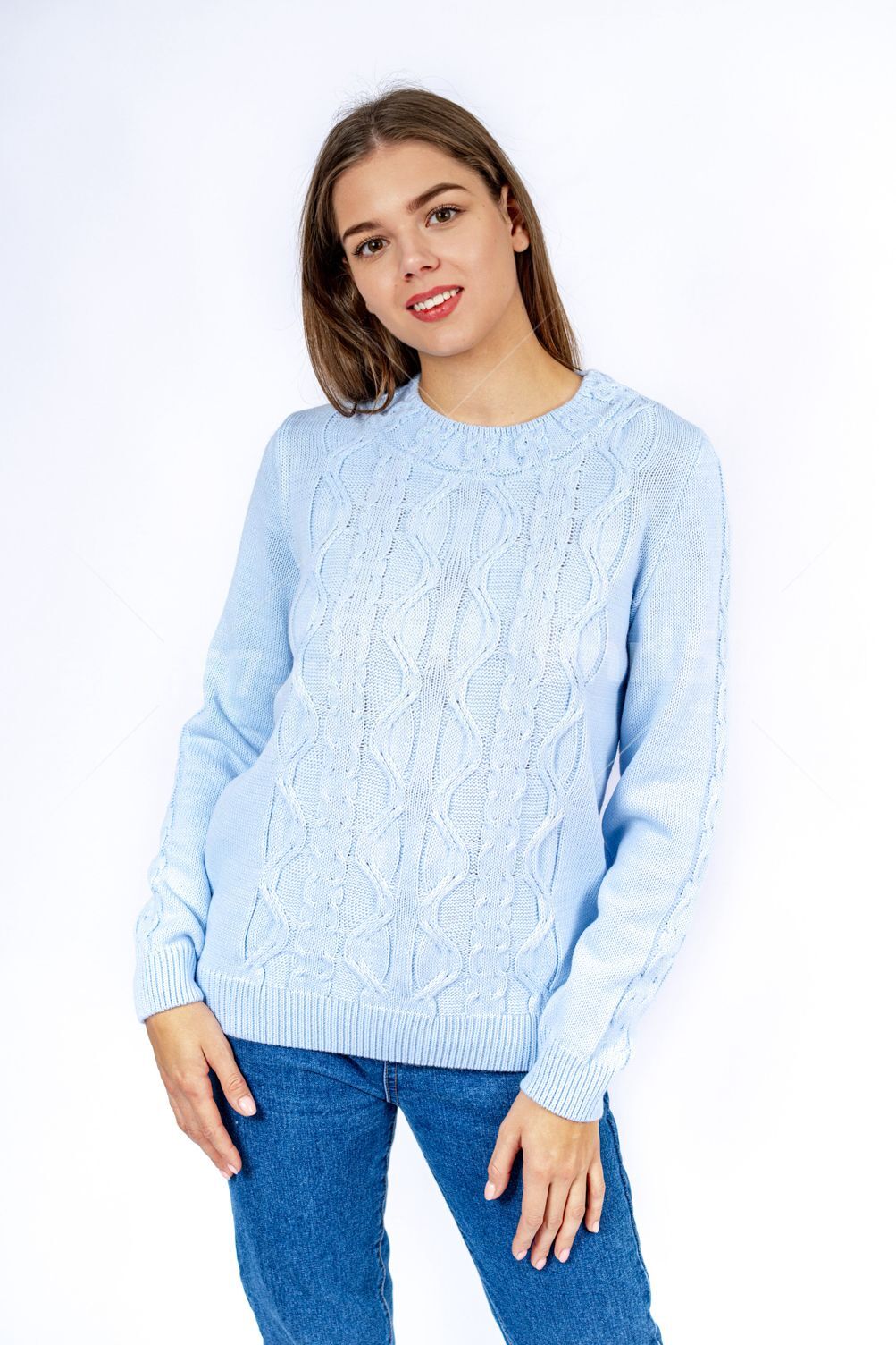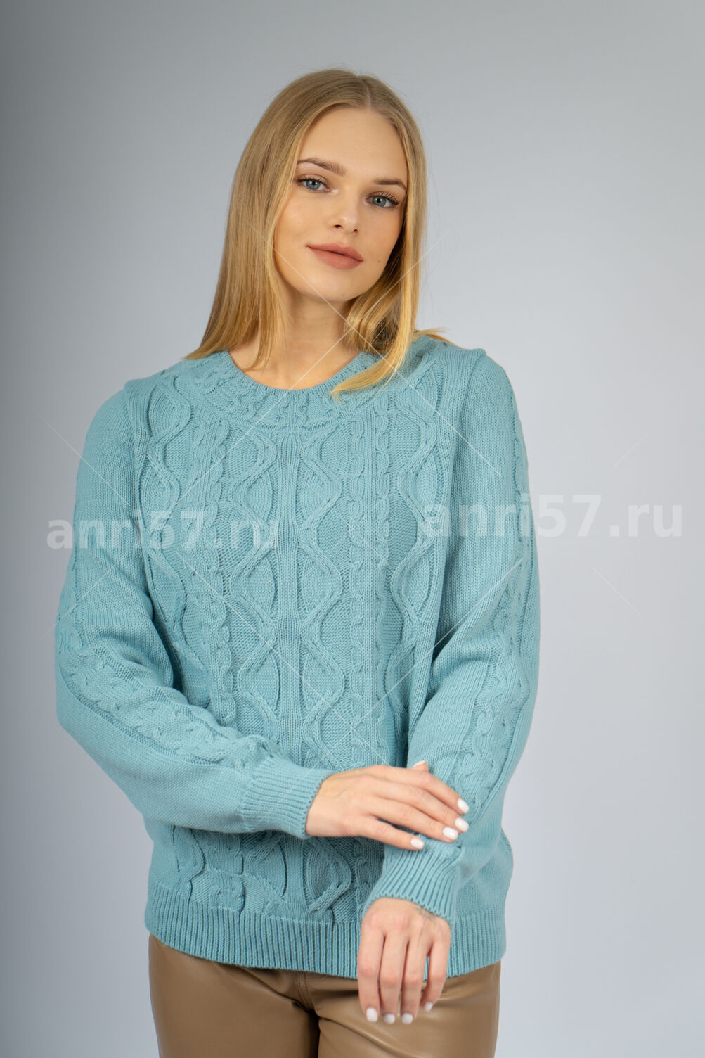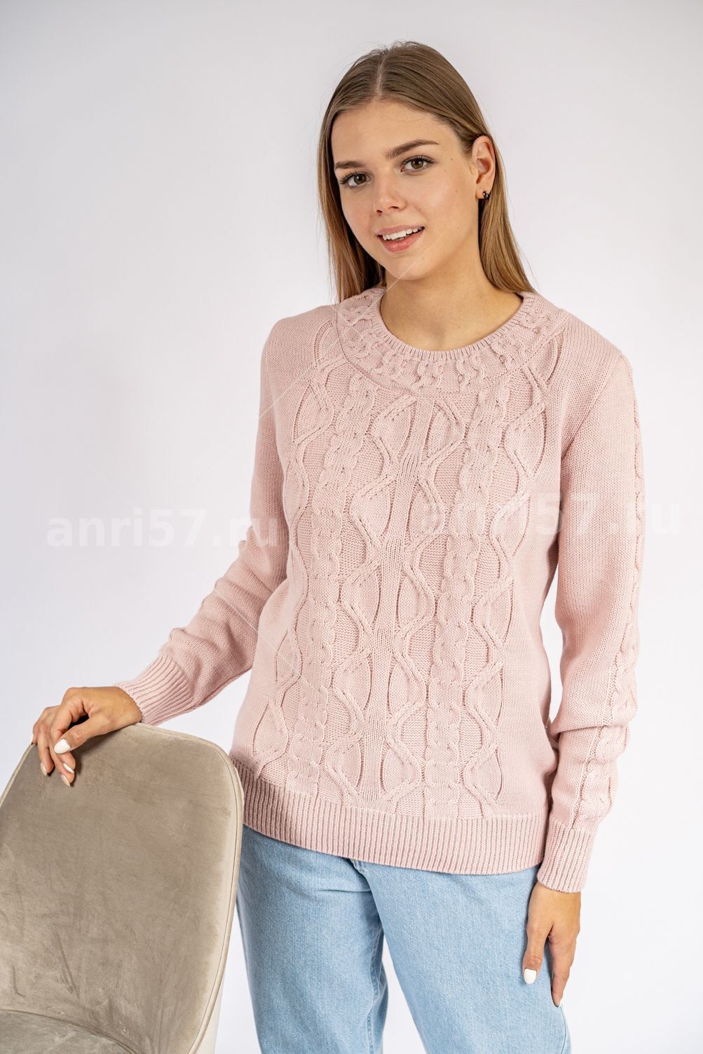 Джемпер женский ж0636. Джемпер полуприлегающего силуэта из мягкого вязаного полотна. По центру полочки и рукава ажурный узор. Рукав втачной, низ на "резинке". Горловина округлой формы с обтачкой. Состав: 30% Шерсть, 70% ПАН.