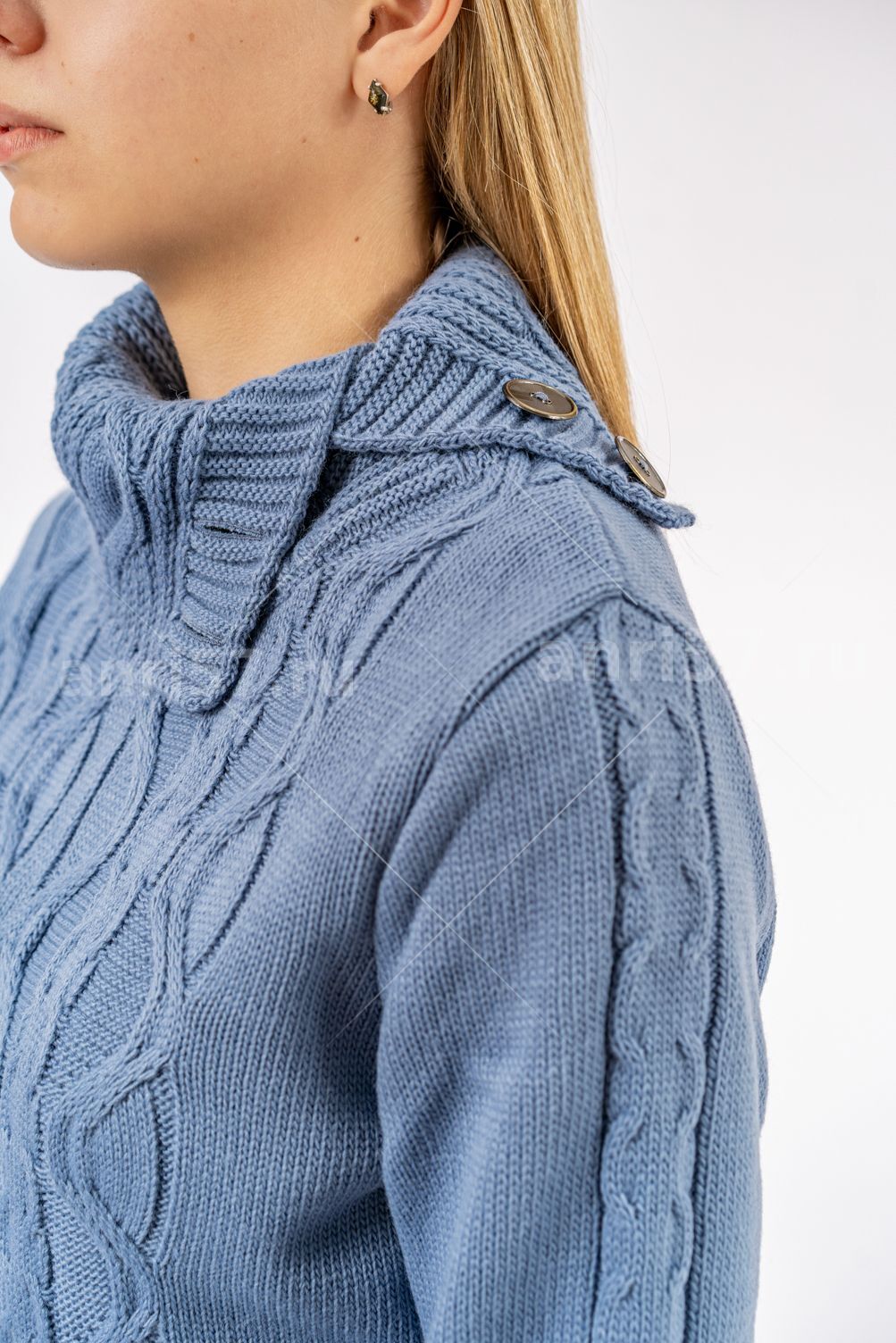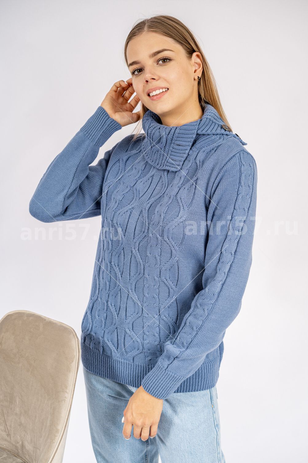 Джемпер женский ж0636х. Джемпер полуприлегающего силуэта из мягкого вязаного полотна. По центру полочки и рукава ажурный узор. Рукав втачной, низ на "резинке". Воротник хомут, застегивается на петли и пуговицы. Состав: 30% Шерсть, 70% ПАН.