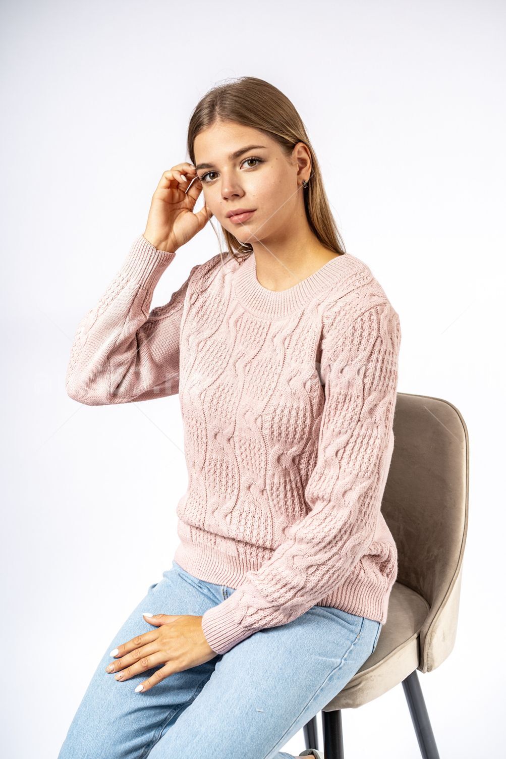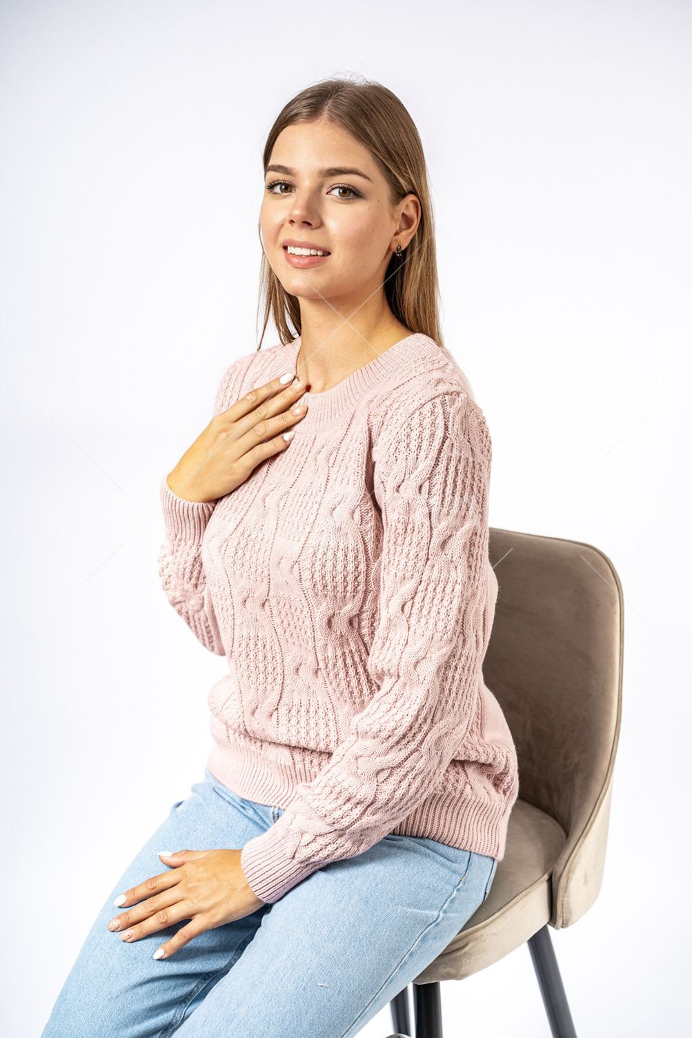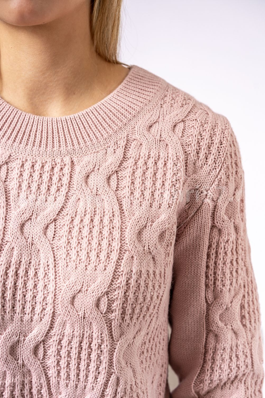 Джемпер женский ж0637. Джемпер полуприлегающего силуэта из мягкого вязаного полотна. По полочке и центру рукава ажурный узор. Горловина округлой формы с обтачкой. Рукав втачной на резинке по низу. Состав: 30% Шерсть, 70% ПАН.