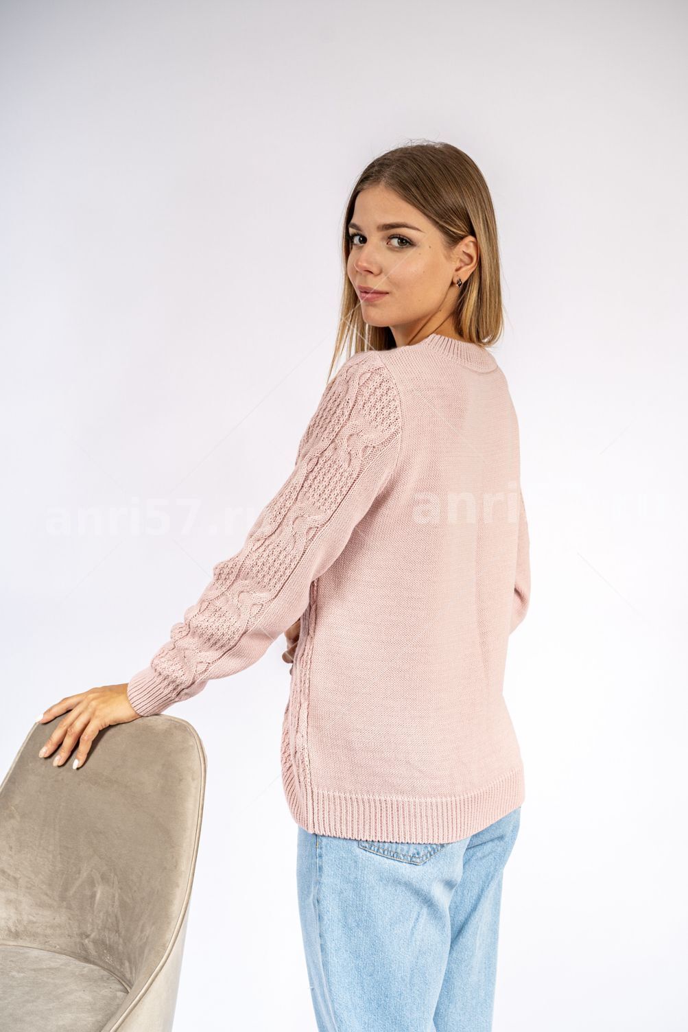 Джемпер женский ж0637. Джемпер полуприлегающего силуэта из мягкого вязаного полотна. По полочке и центру рукава ажурный узор. Горловина округлой формы с обтачкой. Рукав втачной на резинке по низу. Состав: 30% Шерсть, 70% ПАН.