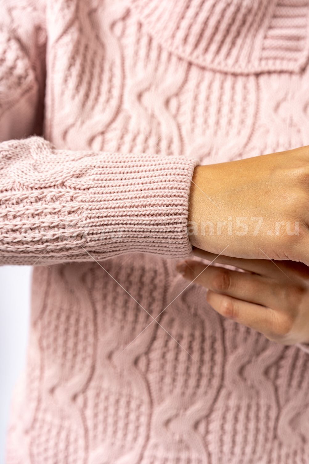 Джемпер женский ж0637х. Джемпер полуприлегающего силуэта из мягкого вязаного полотна. По полочке и центру рукава ажурный узор. Воротник хомут, застегивающийся на петли и пуговицы. Рукав втачной на резинке по низу. Состав: 30% Шерсть, 70% ПАН.