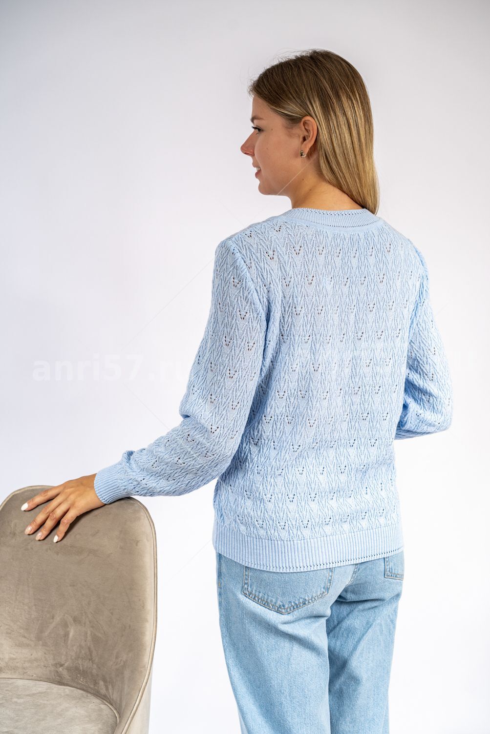 Джемпер женский ж0640. Джемпер полуприлегающего силуэта из ажурного вязаного полотна с добавлением хлопка. Низ и рукава на "резинке". Горловина на "мыс". Состав: 50% Хлопок, 50% ПАН.