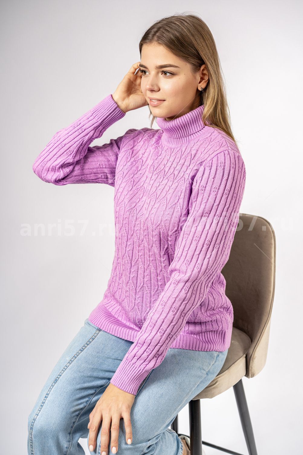 Джемпер женский ж0643х. Джемпер полуприлегающего силуэта из фактурного вязаного полотна с воротником "стойка-хомут". Рукав втачной. Низ рукава, низ изделия на "резинке". Состав: 30% Шерсть, 70% ПАН.