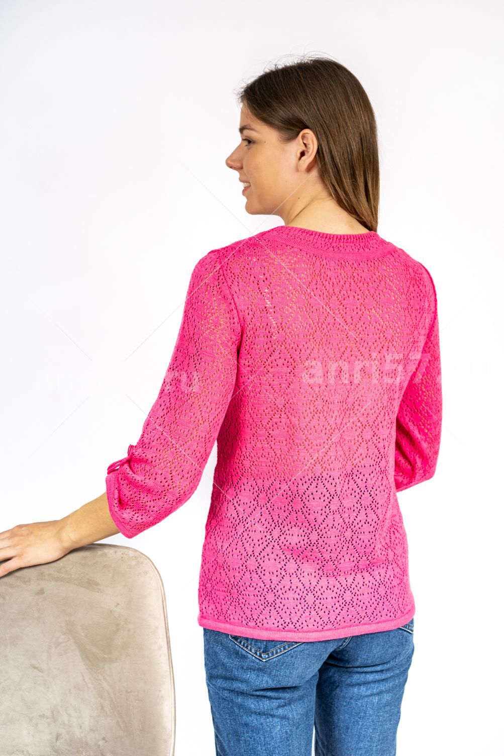 Джмепер женский ж0542. Джемпер полуприлегающего силуэта из ажурного вязаного полотна. Горловина округлой формы с обтачкой. Рукав втачной, с петлей и пуговицей. Низ изделия на кулиске со шнурком. Состав: 50% Хлопок, 50% ПАН.