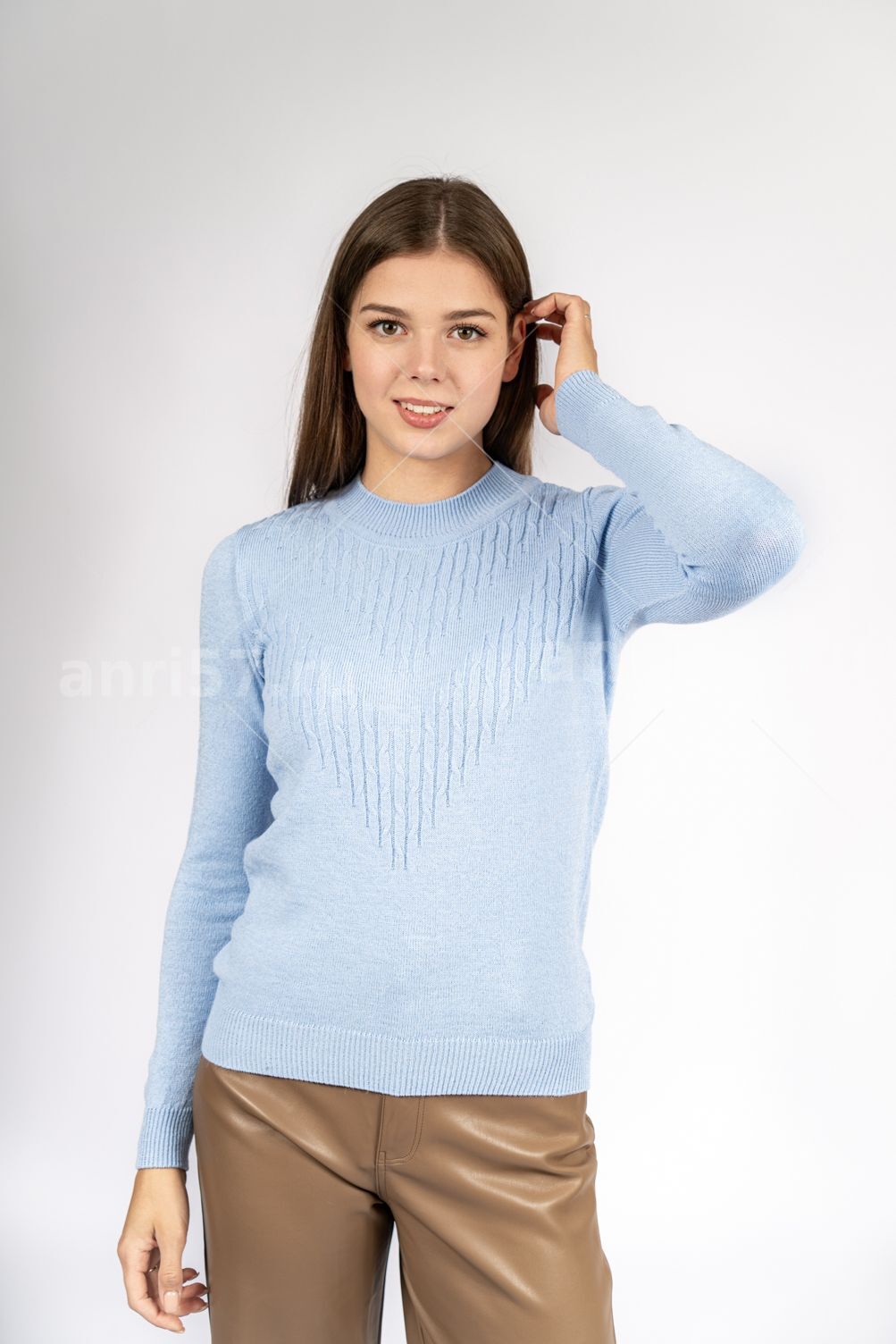 Джемпер женский ж0685. Джемпер полуприлегающего силуэта с округлой горловиной с обтачкой. Изготовлен из мягкой, эластичной пряжи по бесшовной технологии. Низ рукава, низ изделия на "резинке". Полочка с фактурным узором. Состав: 60% Акрил, 20% Шерсть, 10% Полиамид, 10% Эластан.