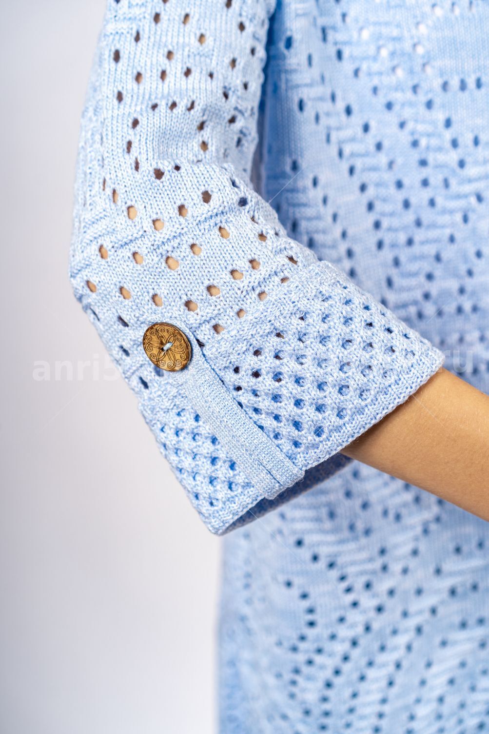 Кардиган женский ж0421. Кардиган полуприлегающего силуэта из ажурного вязаного полотна с центральной застежкой борта на петли и пуговицы. Горловина на "мыс". Рукав втачной с отворотом фиксированным на петлю и пуговицу. В боковых швах разрезы. Состав: 50% Хлопок, 50% ПАН.