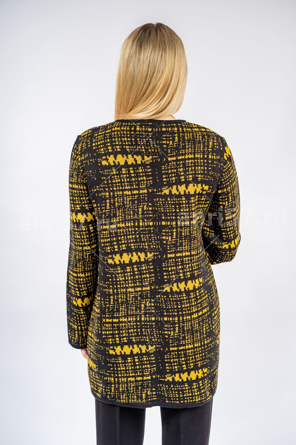 Кардиган женский ж0601.Кардиган полуприлегающего силуэта из двухцветного жаккардового вязаного полотна с центральной застежкой на тесьму "молния".Горловина округлой формы.На полочках накладные карманы.Рукав втачной,прямой.Состав:30% Шерсть, 70% ПАН.