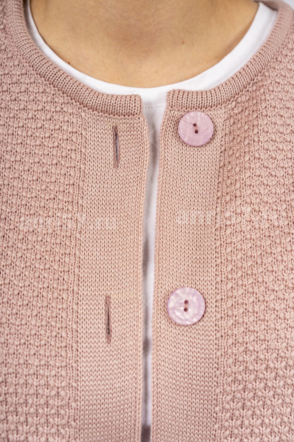 Кардиган женский ж0623.Кардиган полуприлегающего силуэта из фактурного вязаного полотна с центральной застежкой на петли и пуговицы.Горловина округлой формы.Рукав втачной, прямой.На полочках накладные карманы.В боковых швах - разрезы.Состав:30% Шерсть, 70% ПАН.