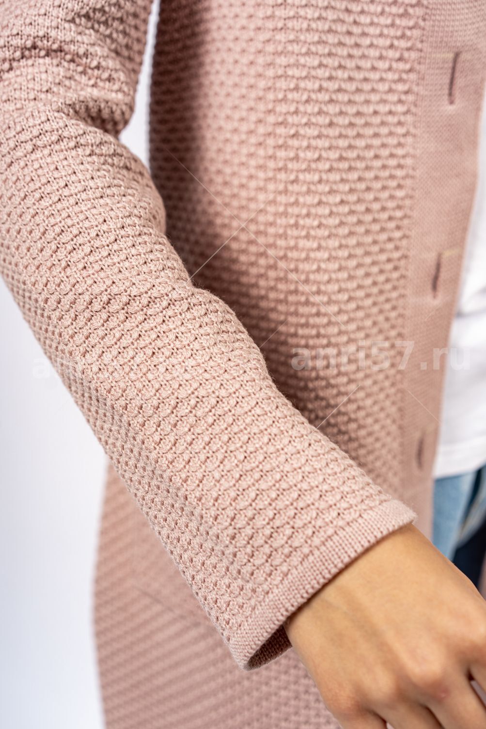 Кардиган женский ж0623.Кардиган полуприлегающего силуэта из фактурного вязаного полотна с центральной застежкой на петли и пуговицы.Горловина округлой формы.Рукав втачной, прямой.На полочках накладные карманы.В боковых швах - разрезы.Состав:30% Шерсть, 70% ПАН.