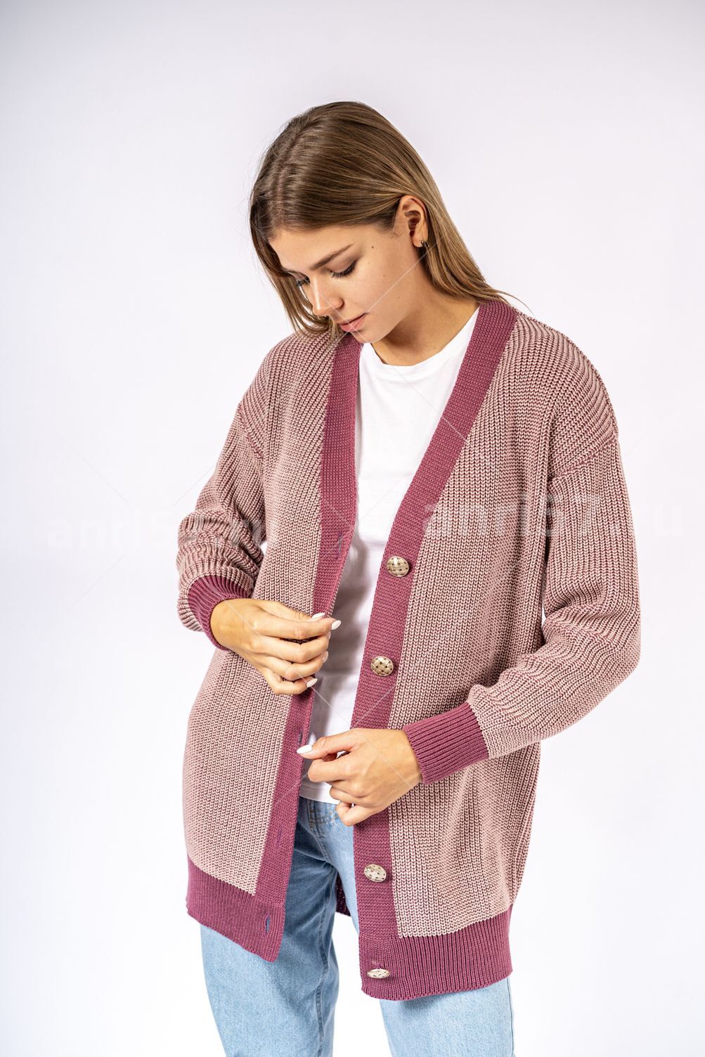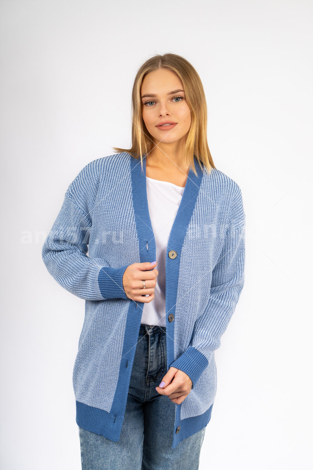 Кардиган женский ж0627.Кардиган прямого силуэта, свободного прилегания из фактурного, двухцветного, объемного, вязаного полотна, с центральной застежкой на петли и пуговицы, с заниженной линией плеча, с объемными рукавами.Низ изделия, низ рукава на высокой "резинке".Состав:30% Шерсть, 70% ПАН
