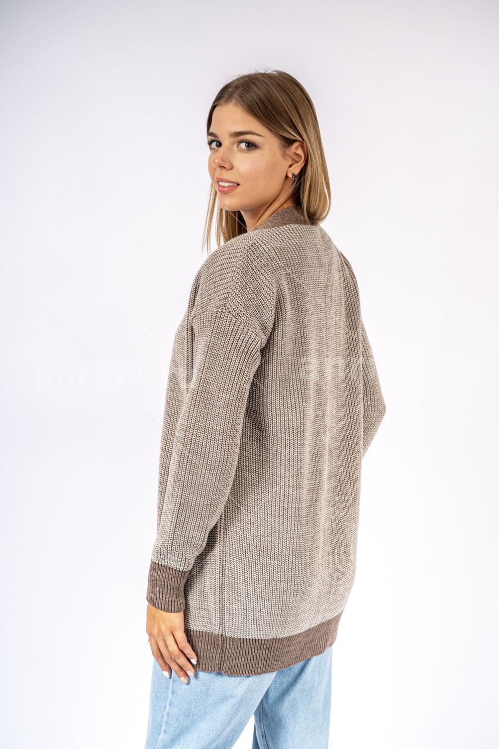 Кардиган женский ж0627.Кардиган прямого силуэта, свободного прилегания из фактурного, двухцветного, объемного, вязаного полотна, с центральной застежкой на петли и пуговицы, с заниженной линией плеча, с объемными рукавами.Низ изделия, низ рукава на высокой "резинке".Состав:30% Шерсть, 70% ПАН