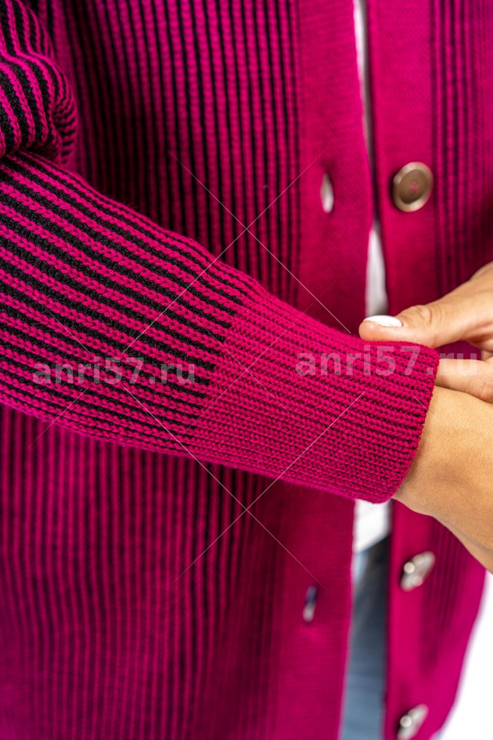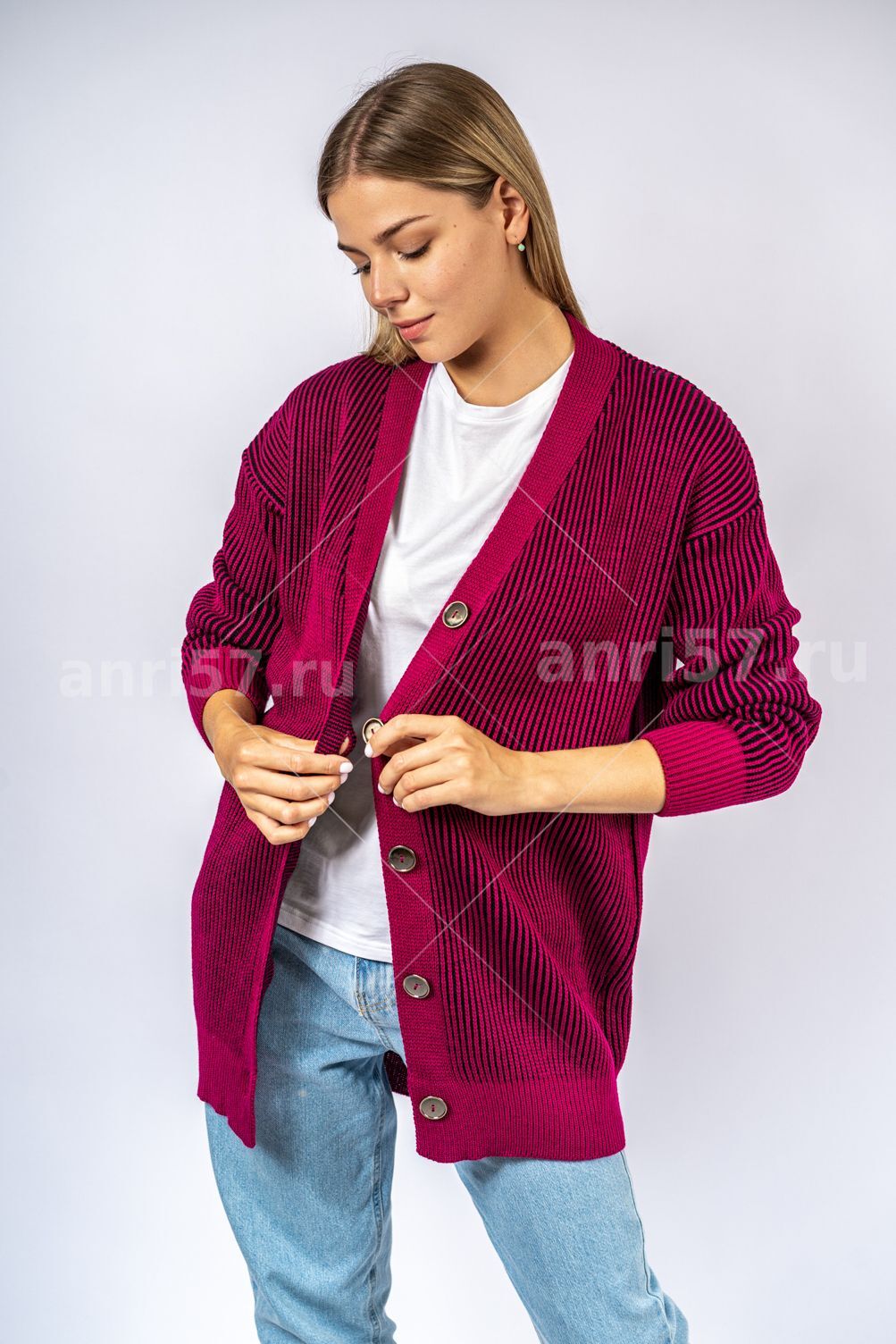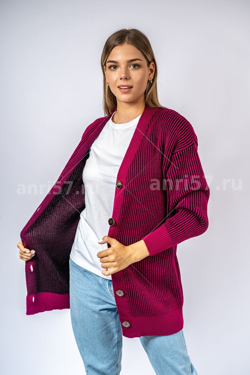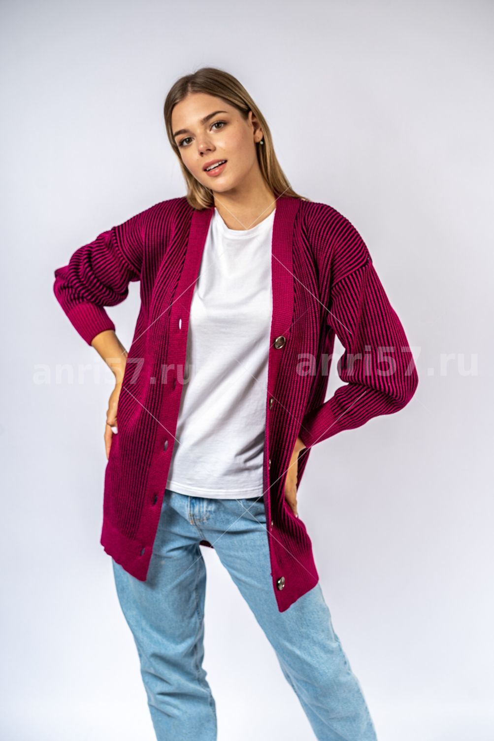 Кардиган женский ж0632.Кардиган прямого силуэта, свободного прилегания из фактурного, двухцветного, вязаного полотна, с центральной застежкой на петли и пуговицы, с заниженной линией плеча, с объемными рукавами.Низ изделия, низ рукава на высокой "резинке".Состав:30% Шерсть, 70% ПАН