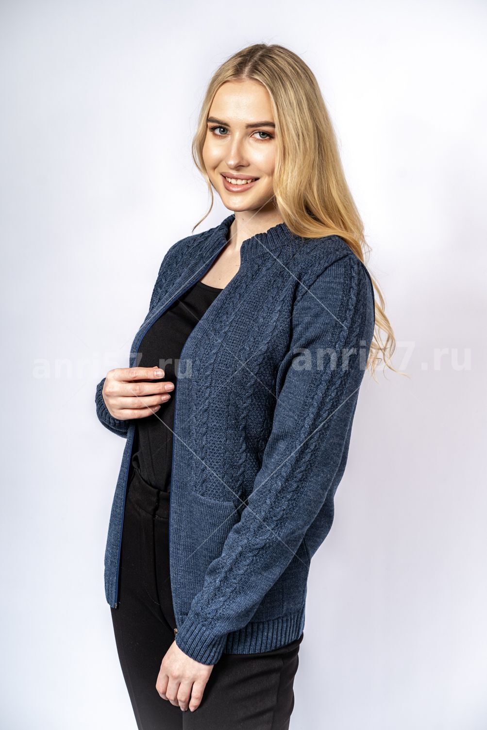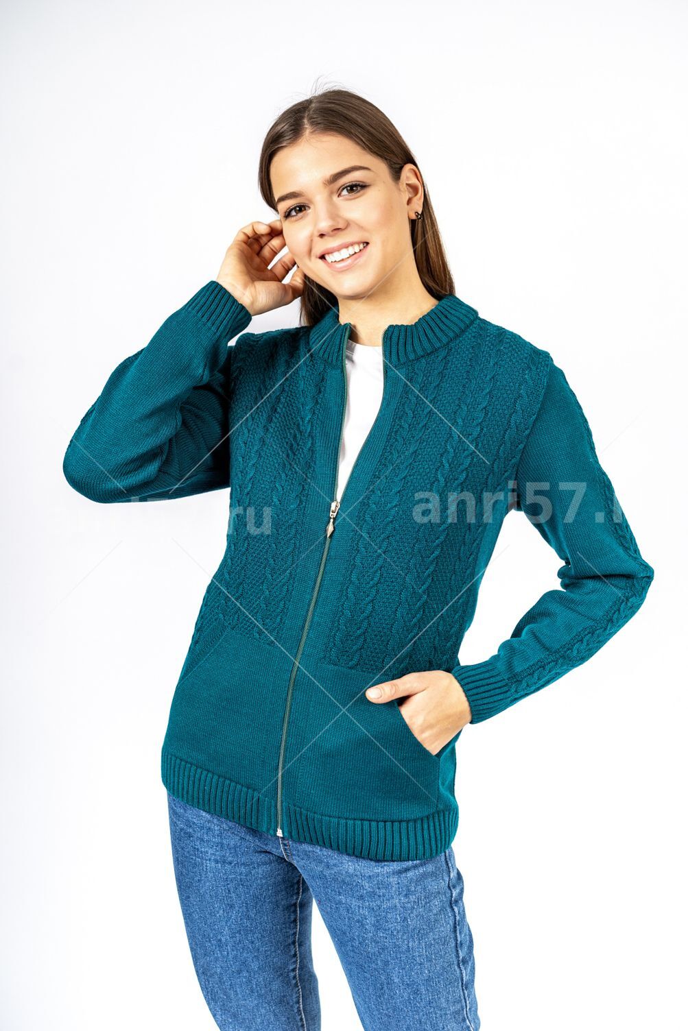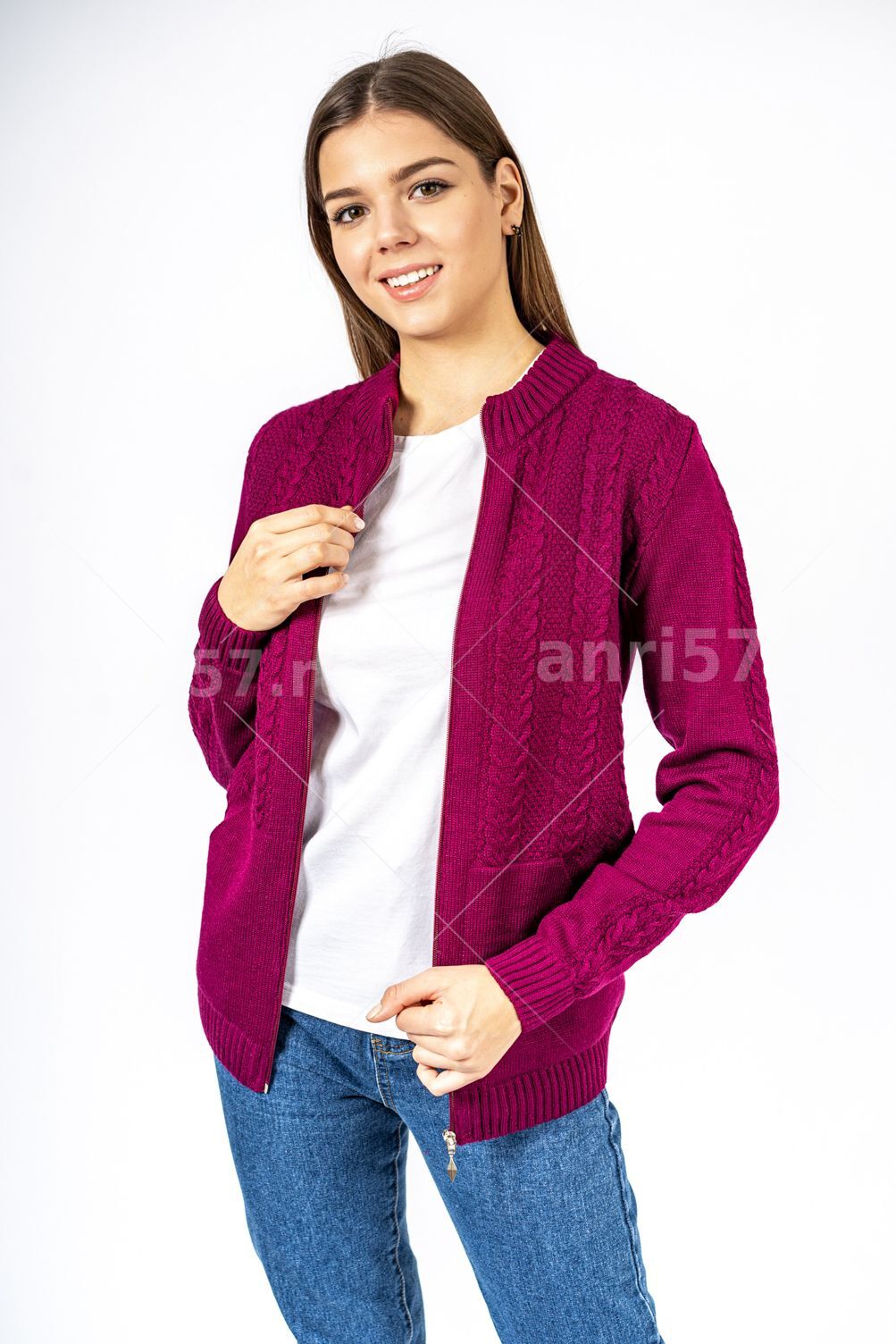 Куртка женская ж0575 стойка. Куртка из вязаного фактурного полотна с центральной застежкой на тесьму "молния". Рукав втачной, прямой. Низ изделия, низ рукава на "резинке". Горловина - стойка. Состав: 30% Шерсть, 70% ПАН.