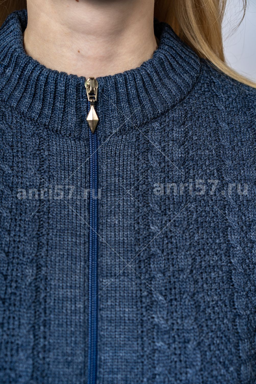 Куртка женская ж0575 стойка. Куртка из вязаного фактурного полотна с центральной застежкой на тесьму "молния". Рукав втачной, прямой. Низ изделия, низ рукава на "резинке". Горловина - стойка. Состав: 30% Шерсть, 70% ПАН.