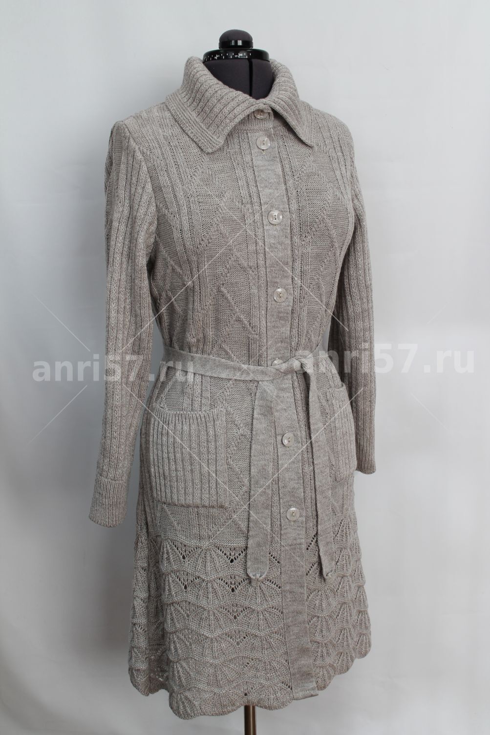 Пальто женское ж0234. Пальто полуприлегающего силуэта с ценатральной застежкой на петли и пуговицы. На полочках накладные карманы. Воротник отложной с прямыми углами. Низ изделия украшен ажурным рисунком. Рукав прямой, втачной, на резинке по низу. В комплекте к изделию, прилагается пояс. Состав: 30% Шерсть, 70% ПАН.