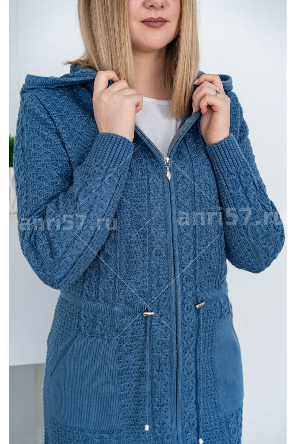 Парка женская ж0353капюшон. Куртка-парка полуприлегающего силуэта с капюшоном, застежка на тесьму "молния". На полочках вывязаны карманы прямоугольной формы, по линии талии кулиска со шнуром из тесьмы с фиксаторами и ограничителями. Рукав втачной на "резинке" по низу. Состав: 30% шерсть, 70% ПАН.