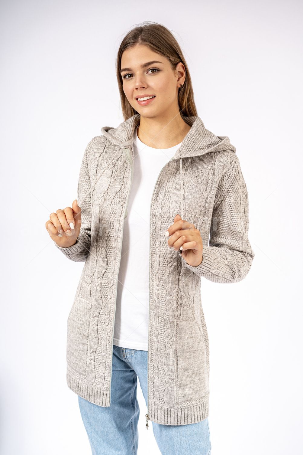 Парка женская ж0597.Парка полуприлегающего силуэта с центральной застежкой на тесьму "молния",с капюшоном.Карманы вывязаны.Рукав втачной, на "резинке" по низу.Состав:30% Шерсть, 70% ПАН.