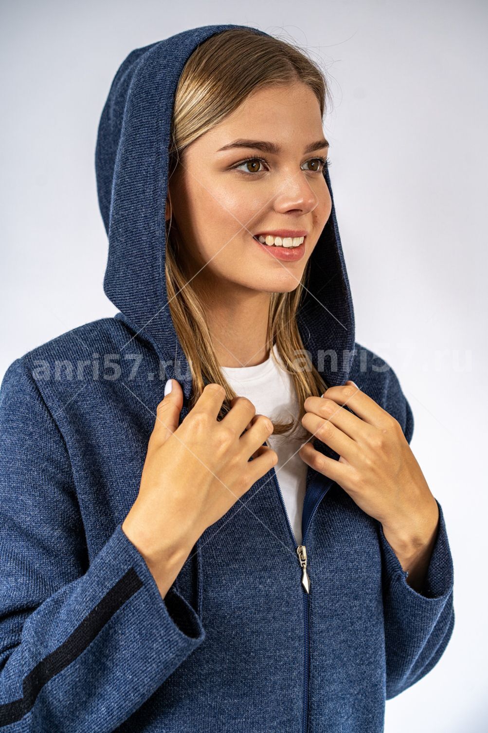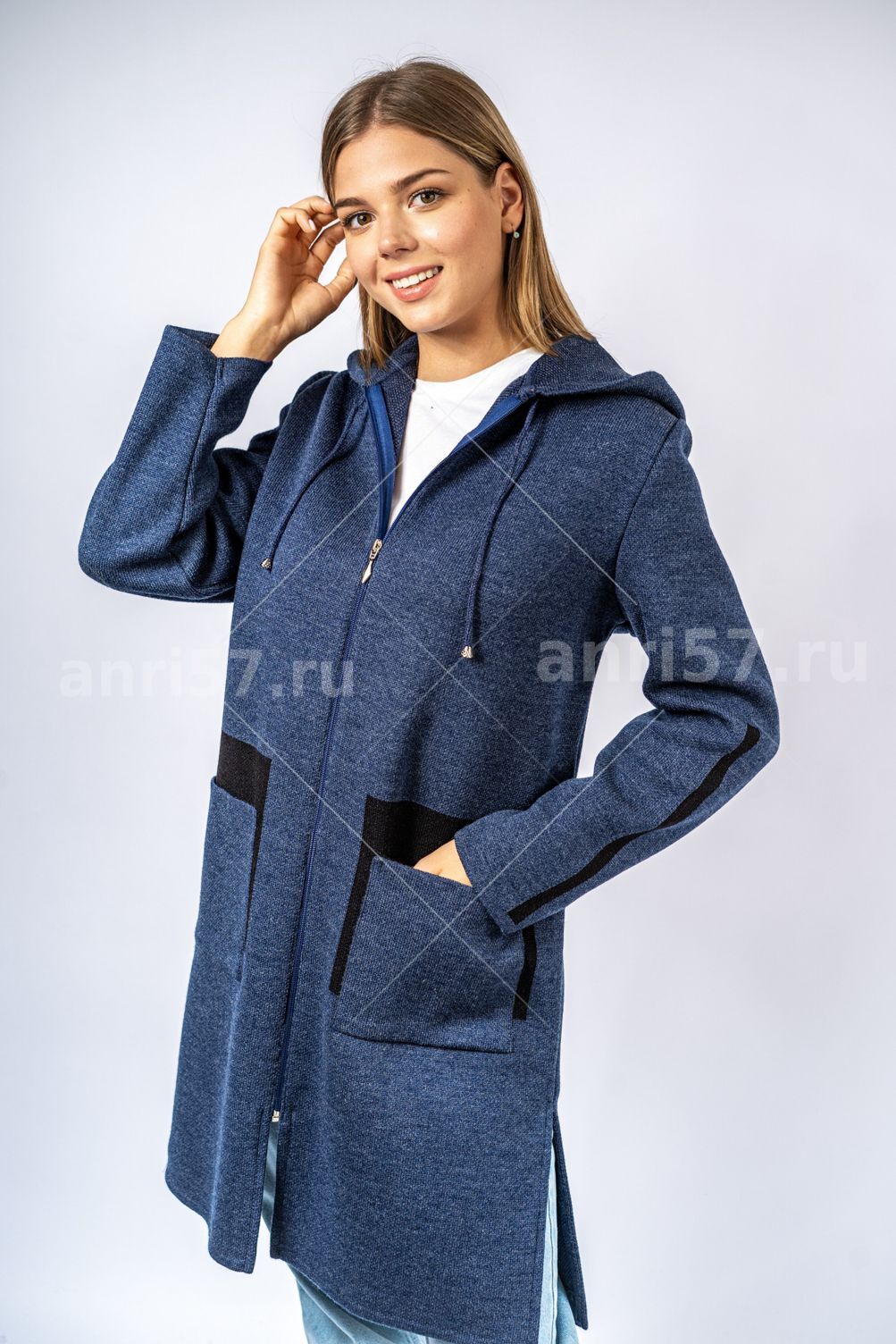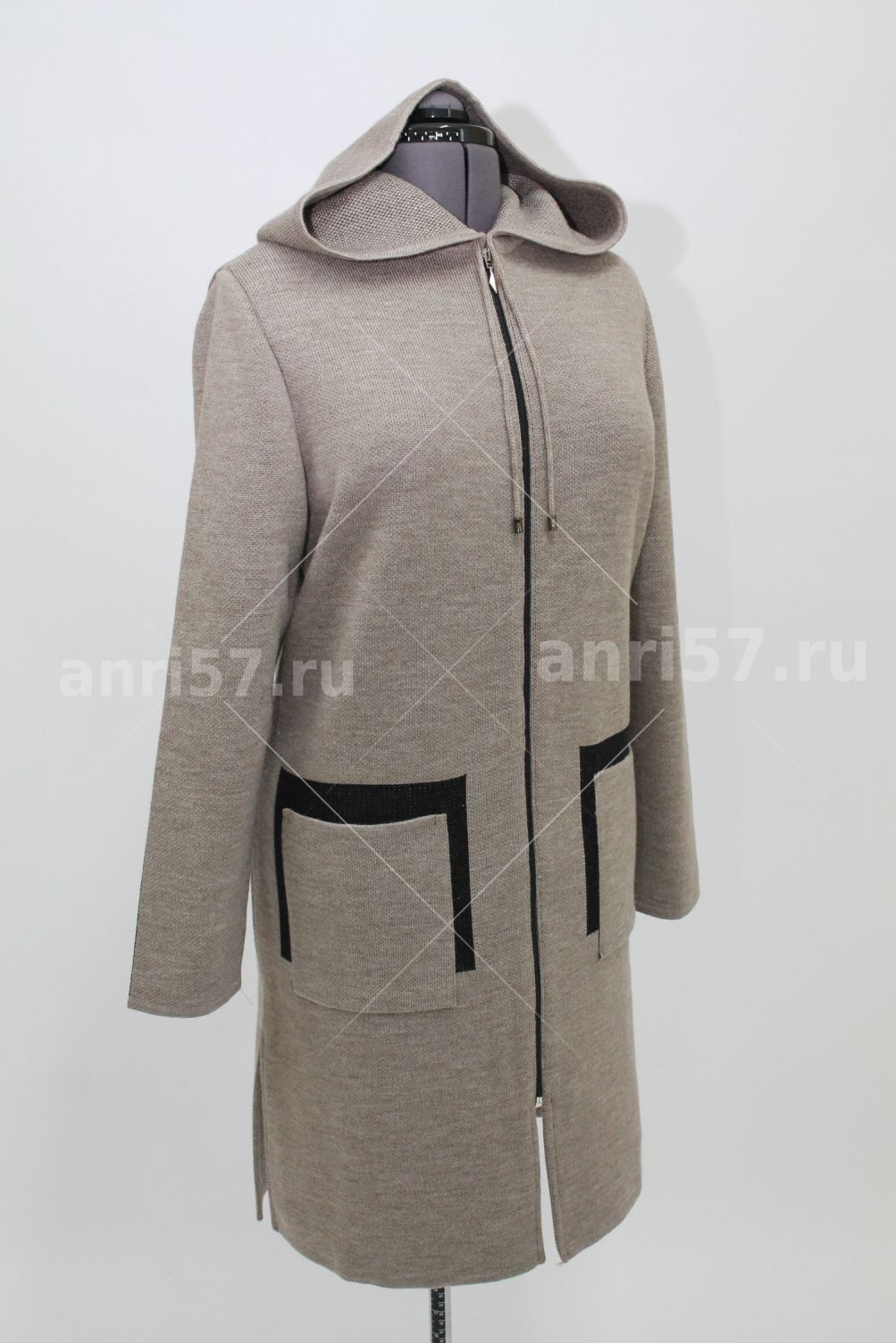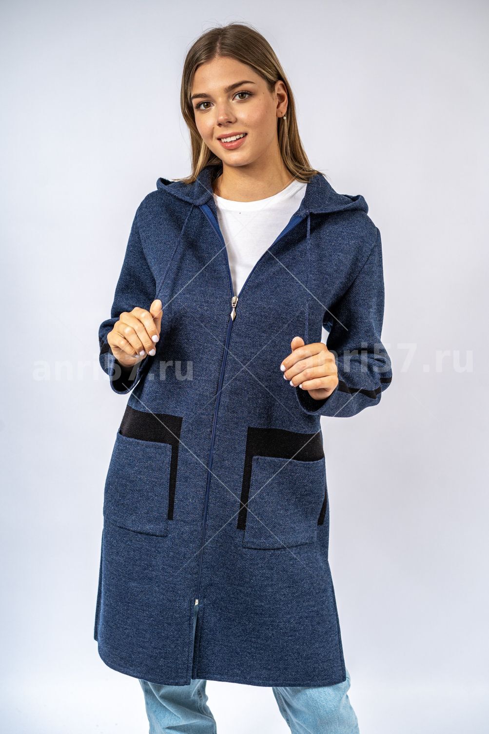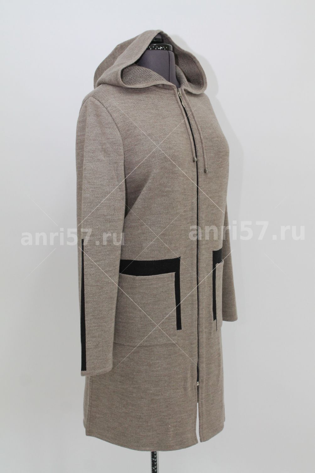 Парка женская ж0626.Пальто-парка из вязаного трикотажного полотна, с центральной застежкой на тесьму "молния",с капюшоном, длинная.На полочках принты - провязы, контрастного цвета.Рукав втачной, прямой.Карманы накладные.Состав:30% Шерсть, 70% ПАН.