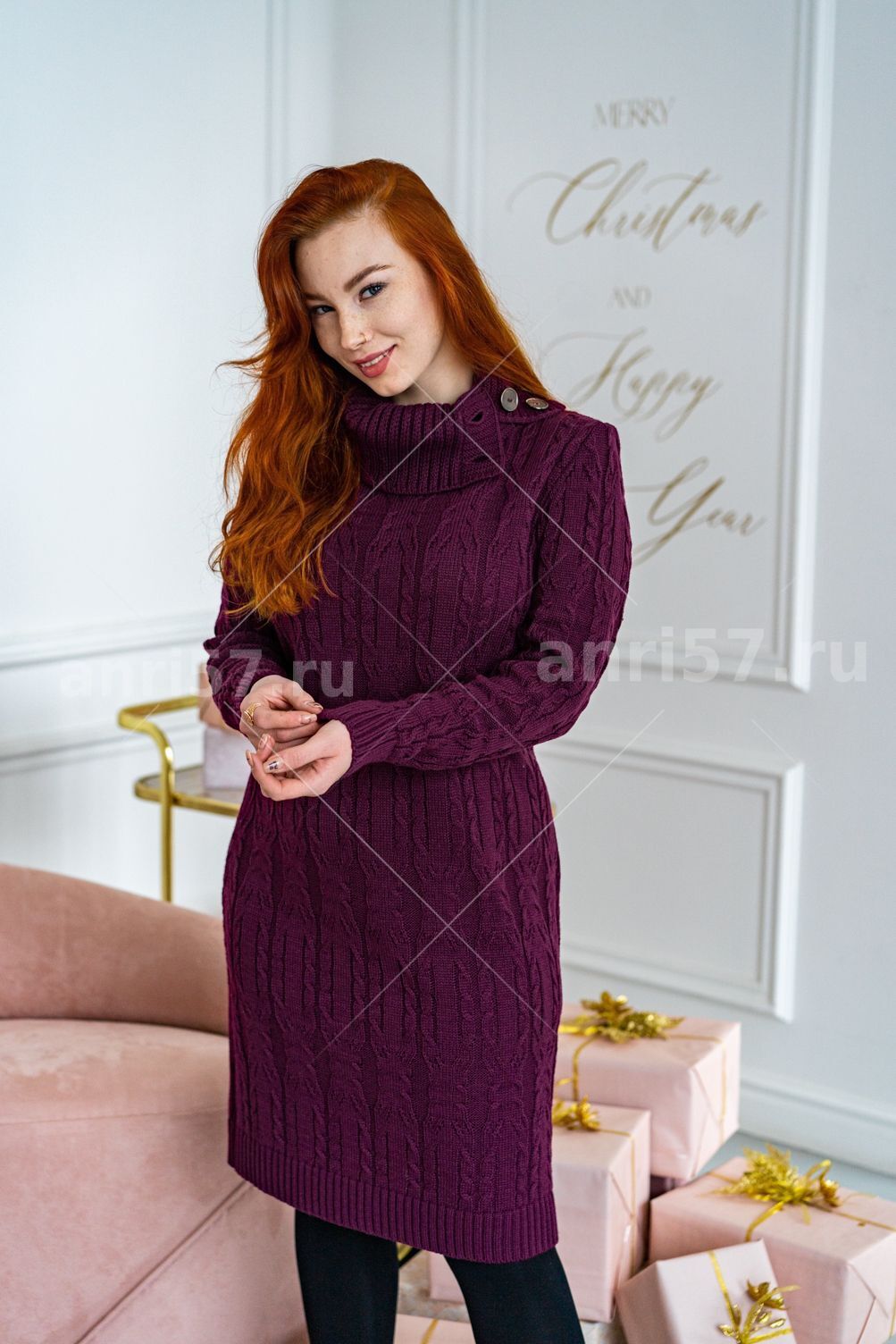 Платье женское ж0592. Платье полуприлегающего силуэта из фактурного вязаного полотна. Рукав втачной, на "резинке" по низу. Воротник - "хомут", застегивающийся на петли и пуговицы. Состав: 30: Шерсть, 70% ПАН.
