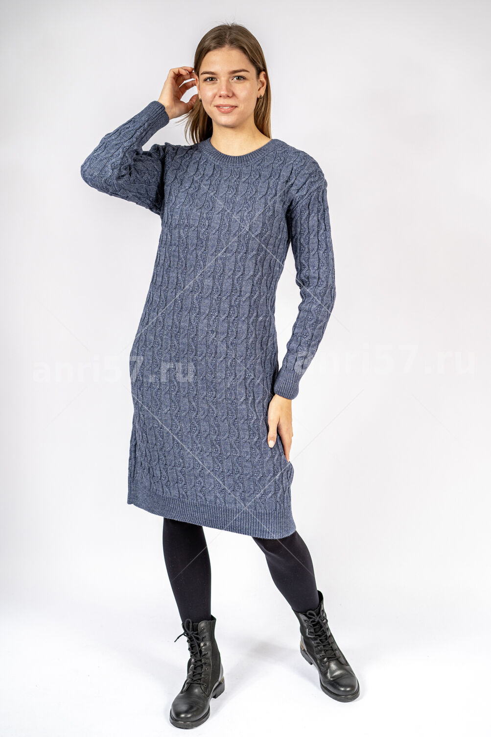 Платье женское ж0649.Платье из фактурноговязаного полотна, полуприлегающего силуэта со спущенной линией плеча.Рукав втачной на "резинке" по низу.Состав:30% Шерсть, 70% ПАН.
