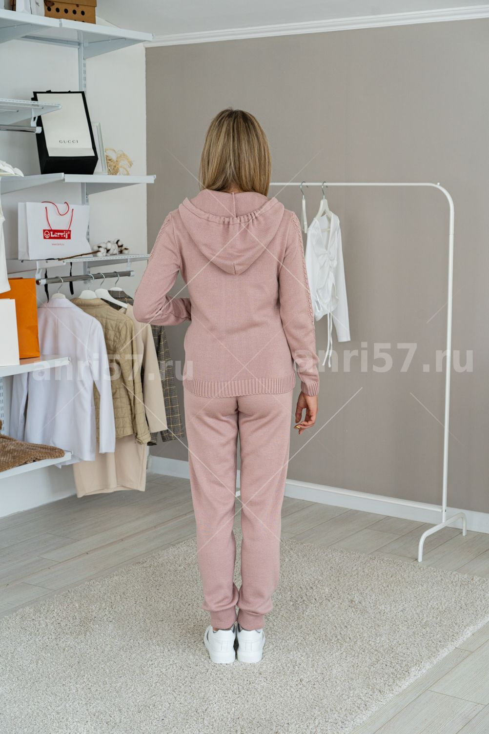 Спортивный костюм женский ж0554. Костюм спортивный из вязаного полотна, состоит из куртки с капюшоном, с центральной застежкой на тесьму "молния" и брюк. Куртка с вывязанными карманами, с фактурным узором на полочке и по рукаву. Брюки на эластичной тесьме по поясу и на "резинке" по низу, зауженного силуэта. Состав: 30% Шерсть, 70% ПАН.