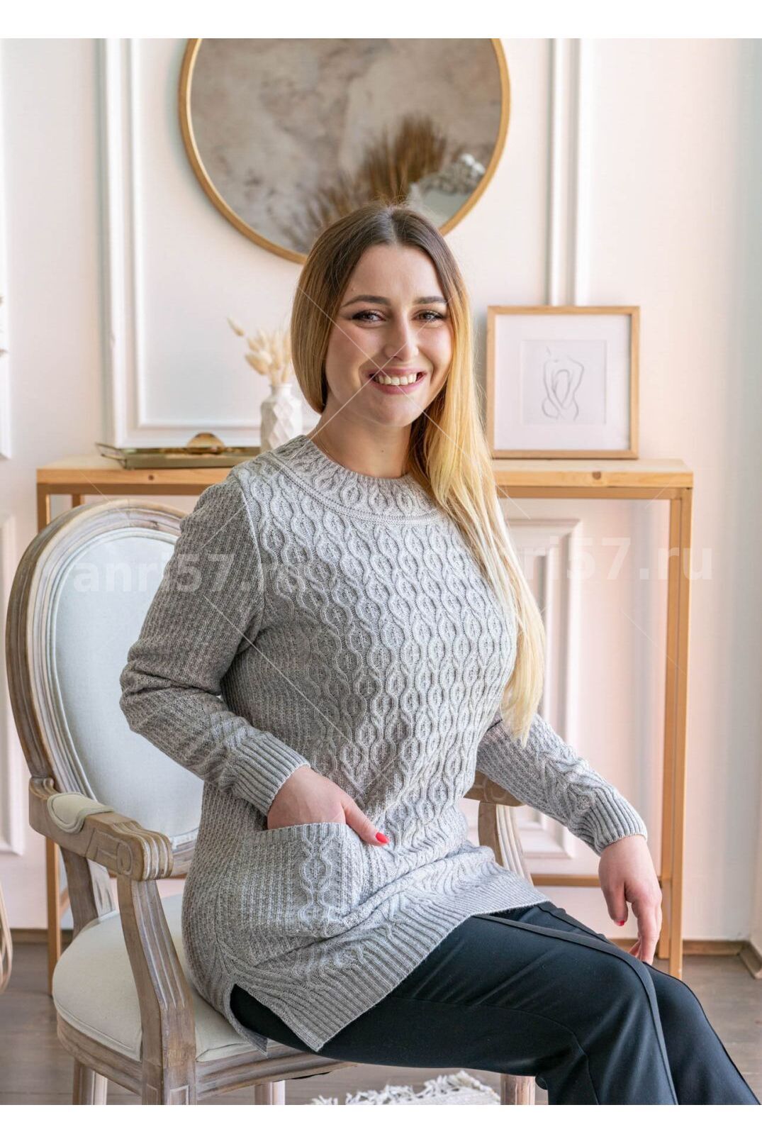 Туника женская ж0338Бейка. Туника прилегающего силуэта. Полочки с накладными карманами и разрезами в боковых швах. Рукав втачной на резинке по низу. Горловина округлой формы с обтачкой. Состав: 30% Шерсть, 70% ПАН.