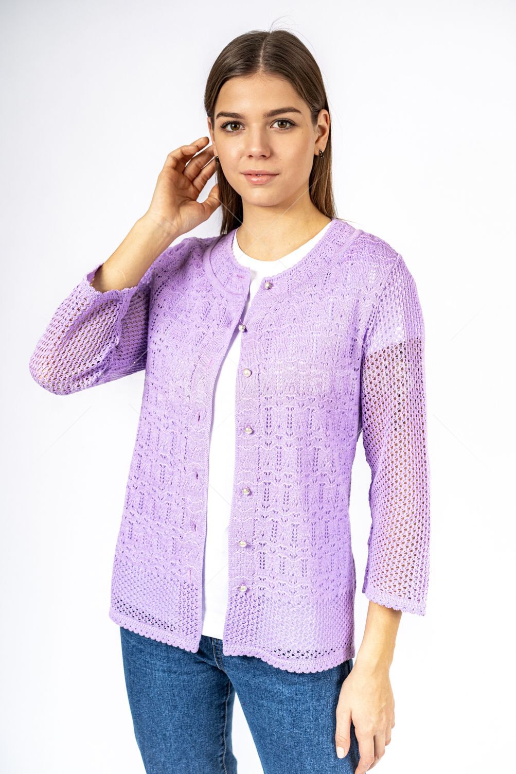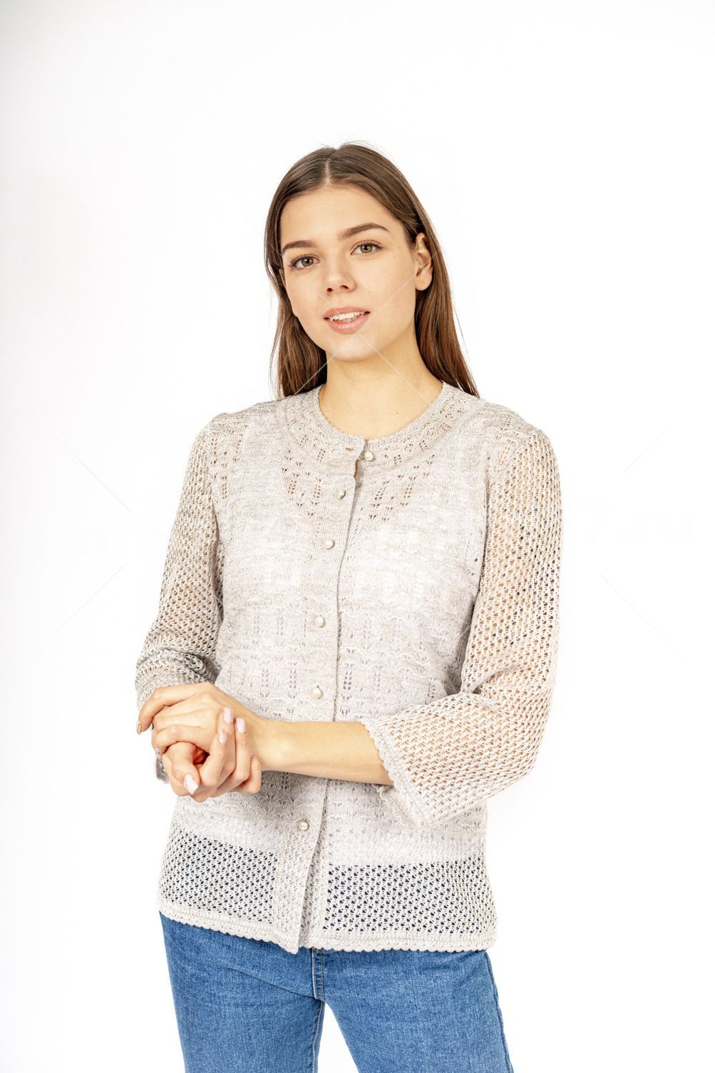 Жакет женский ж0432. Жакет полуприлегающего силуэта из ажурного вязаного полотна с застежкой на петли и пуговицы. Горловина округлой формы с обтачкой. Рукав втачной, укороченный из сетчатого полотна. Состав: 50% Хлопок, 50% ПАН.