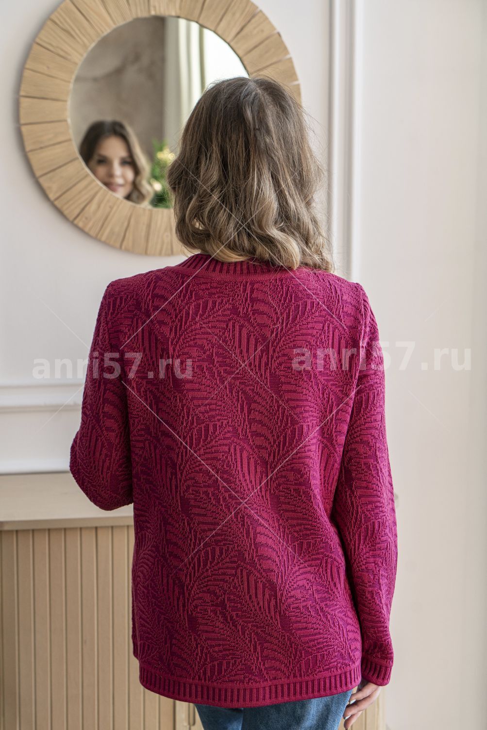Жакет женский ж0514ВЕЛИКАН. Жакет полуприлегающего силуэта из жаккардового вязаного полотна двух цветов с центральной застежкой на петли и пуговицы. Горловина округлой формы с обтачкой. Рукав втачной, прямой. На полочках накладные карманы. Состав: 30% Шерсть, 70% ПАН.