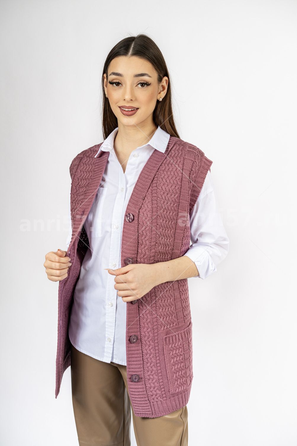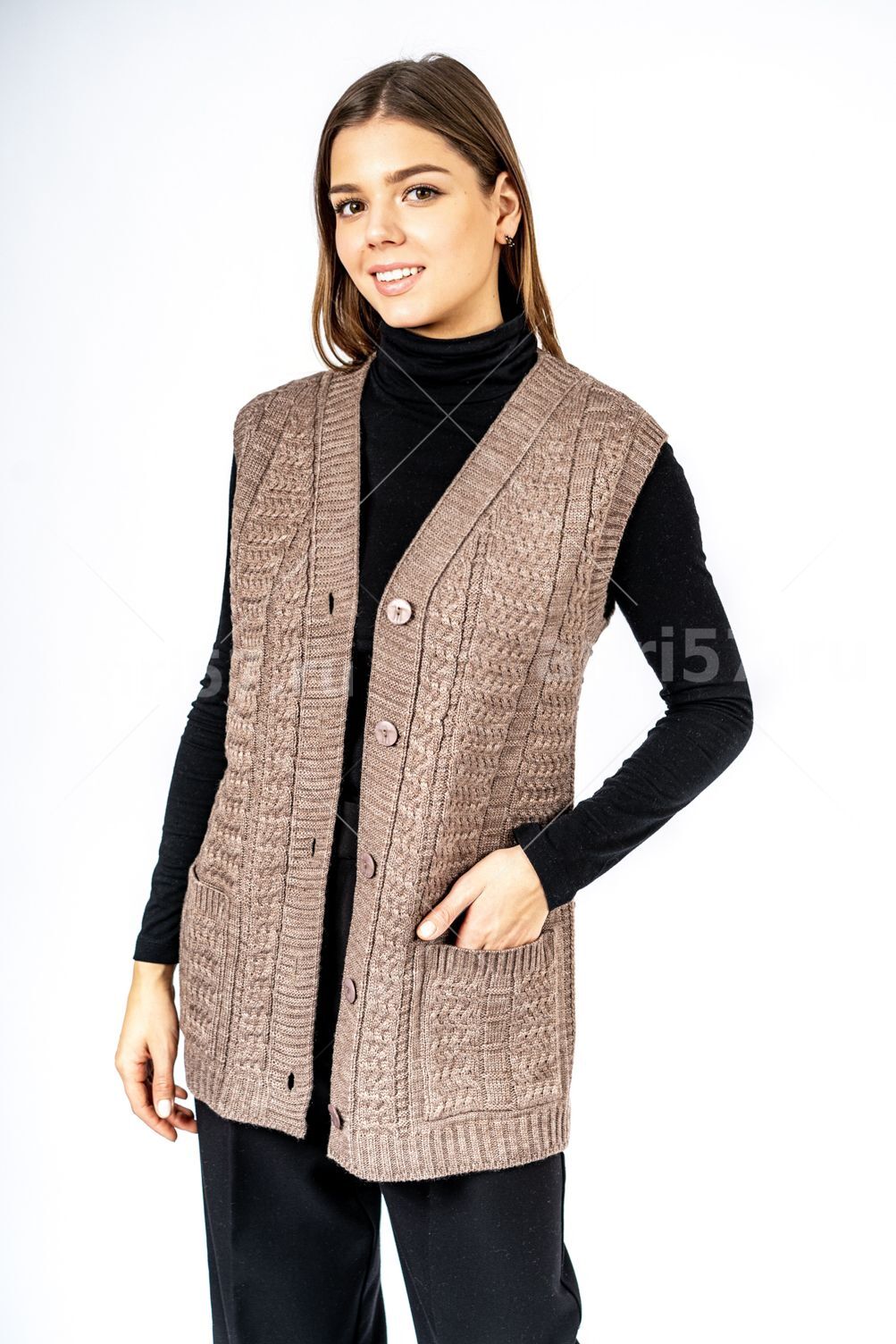 Жилет женский ж0208. Жилет полуприлегающего силуэта с центральной застежкой на петли и пуговицы. Полочки с накладными карманами. Состав: 30% Шерсть, 70% ПАН.