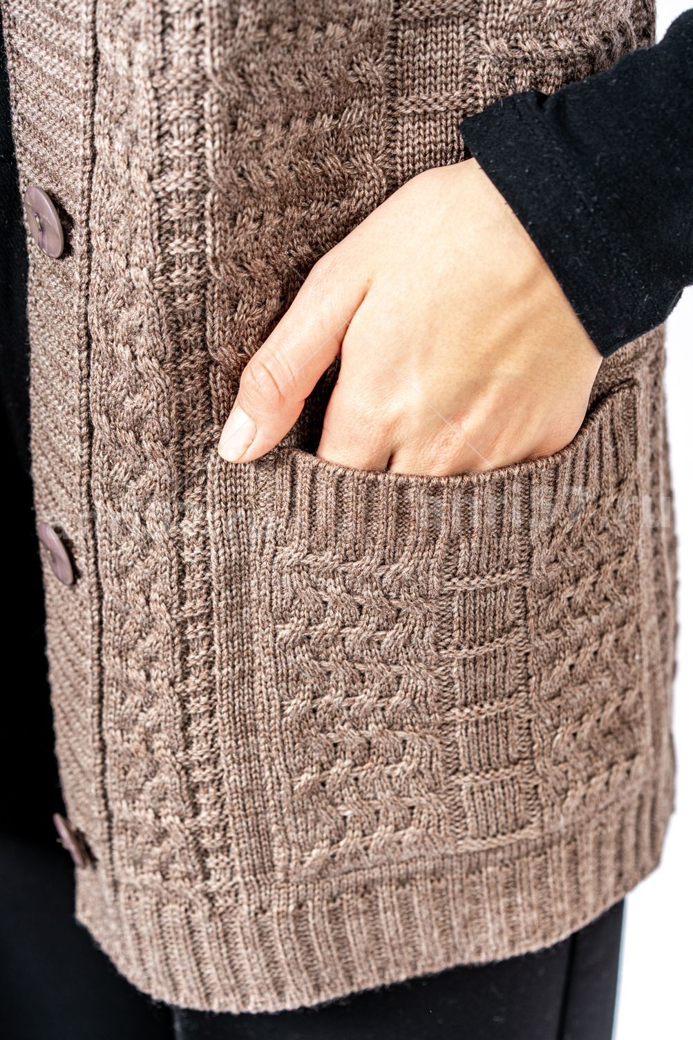 Жилет женский ж0208. Жилет полуприлегающего силуэта с центральной застежкой на петли и пуговицы. Полочки с накладными карманами. Состав: 30% Шерсть, 70% ПАН.